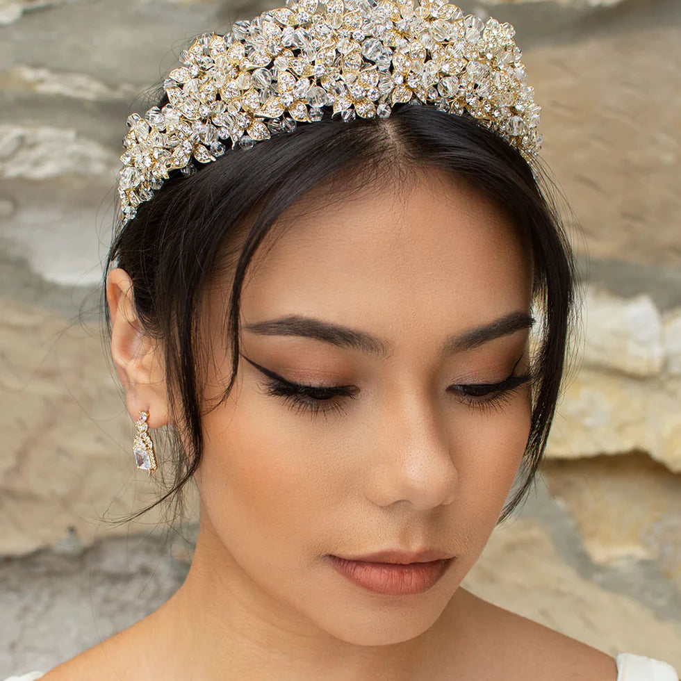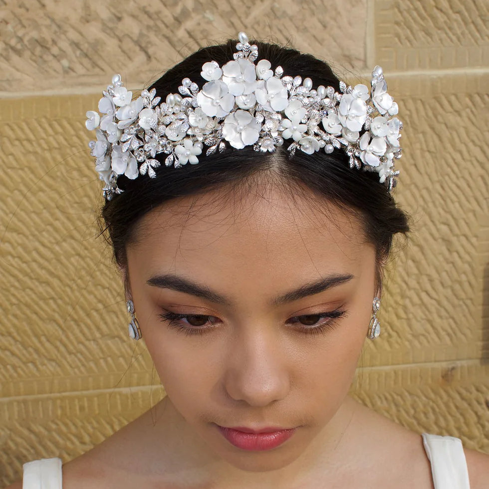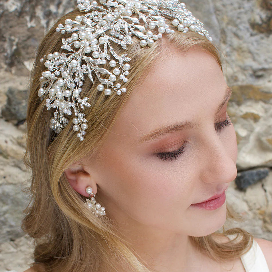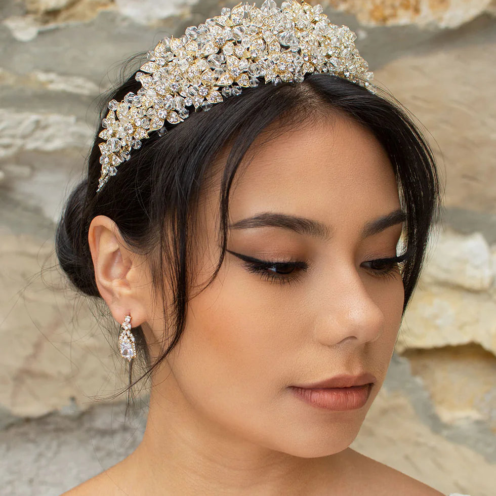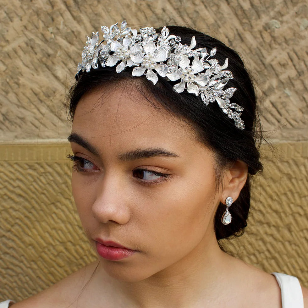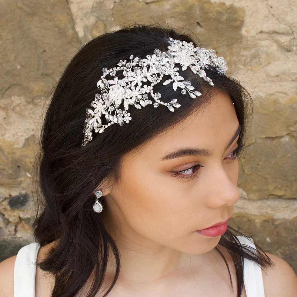 Please keep in mind, many of our luxurious pieces are handcrafted and can be styled either as a crown or as a headband to achieve your design, they are available in rhodium, silver, gold, and rose gold plating with beautiful coloured stones.