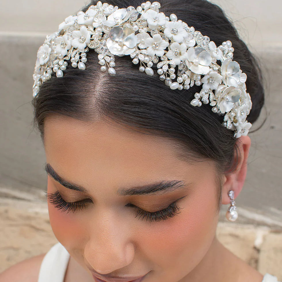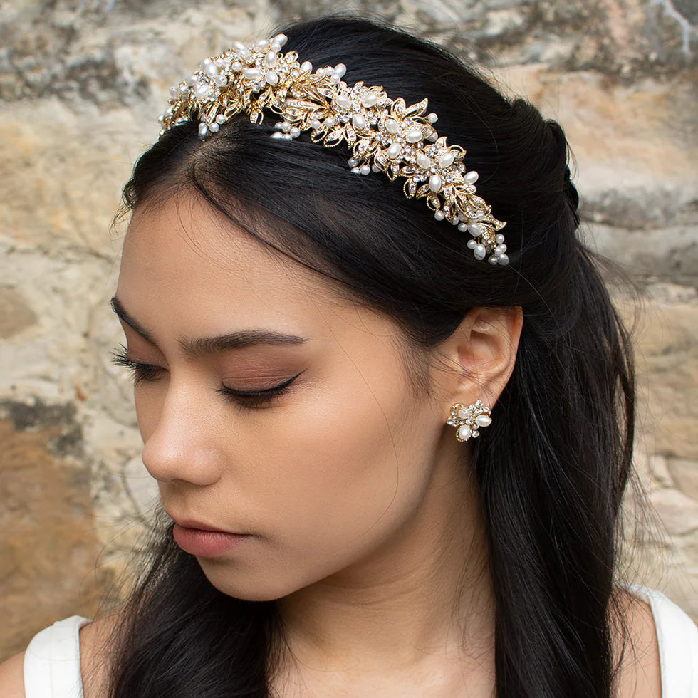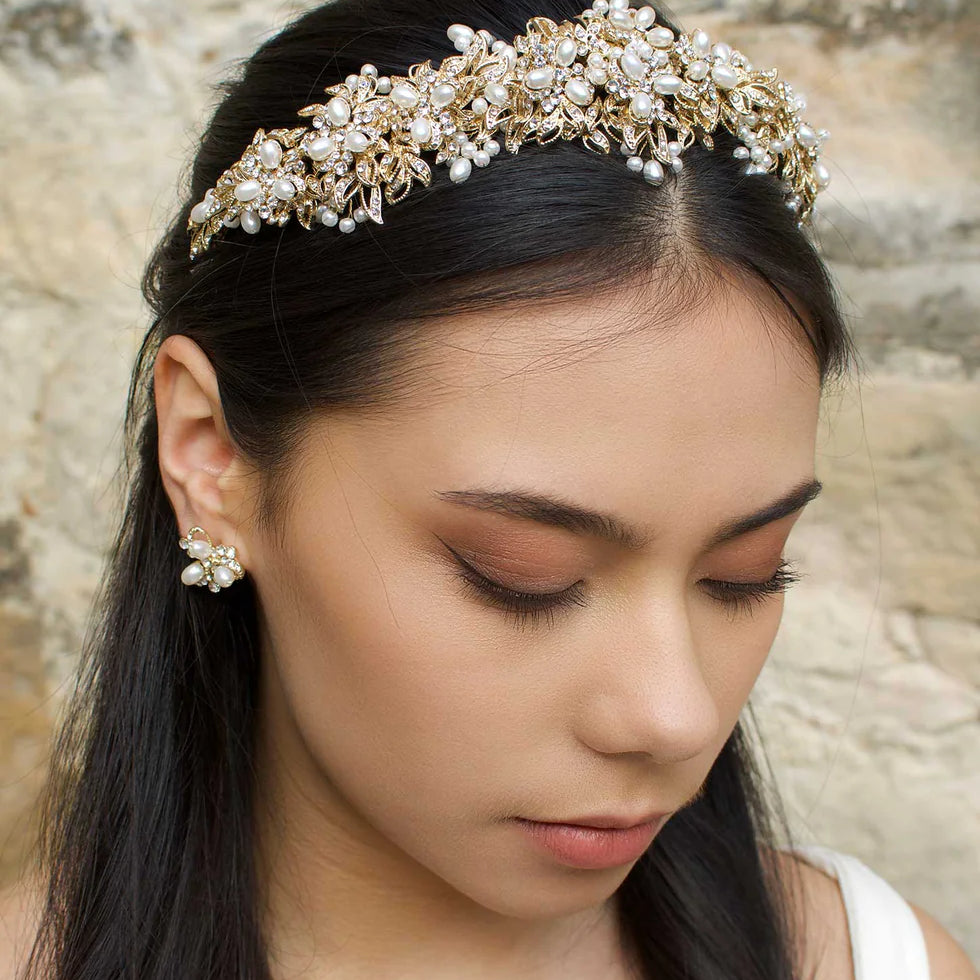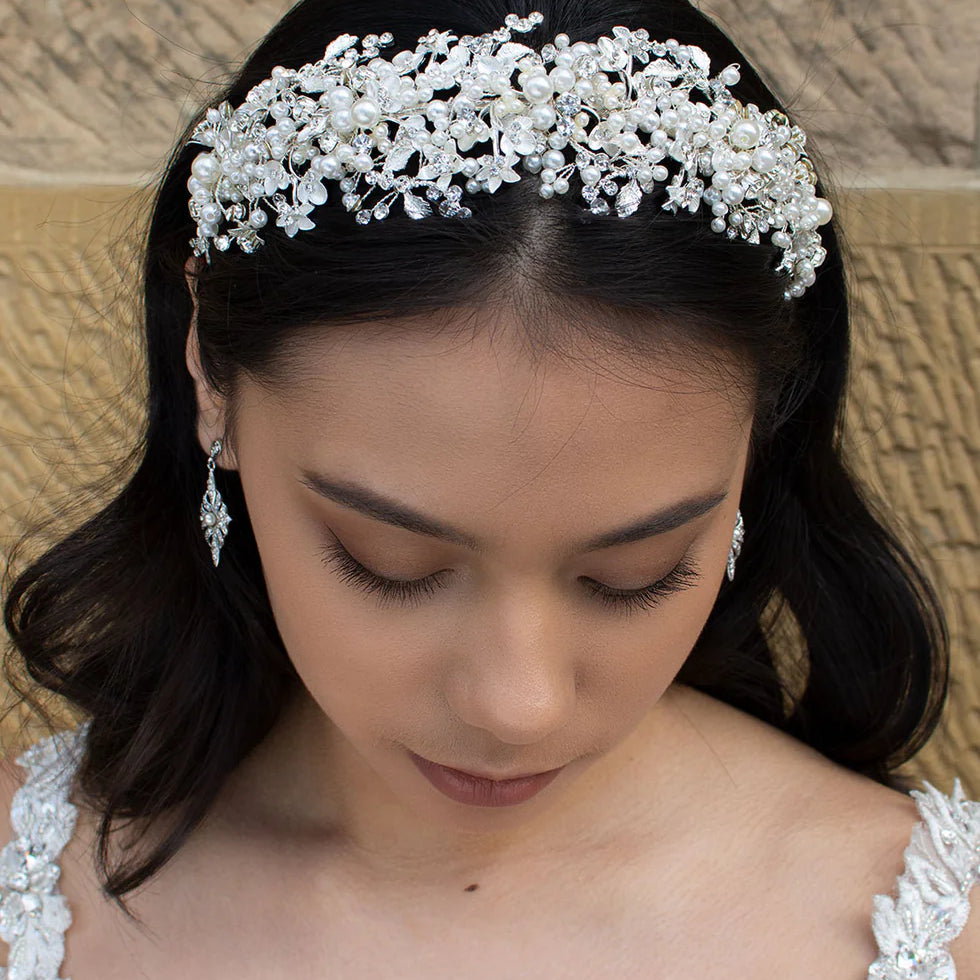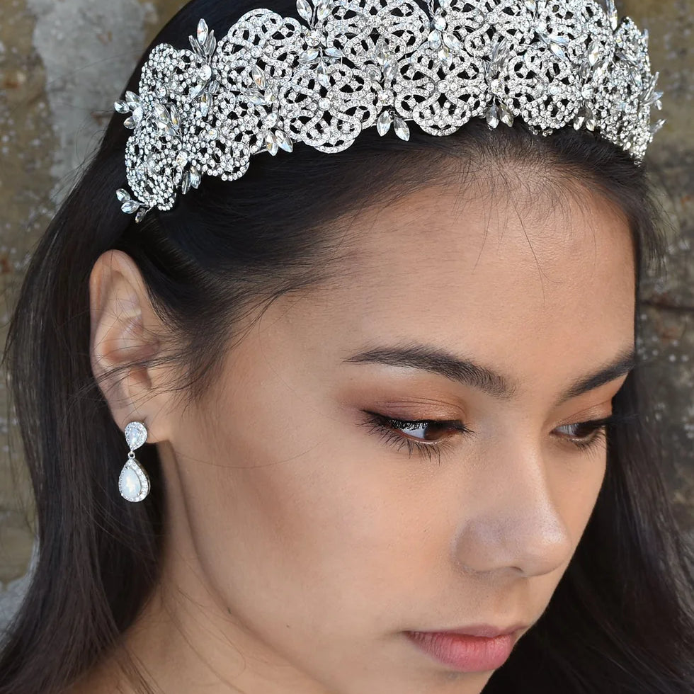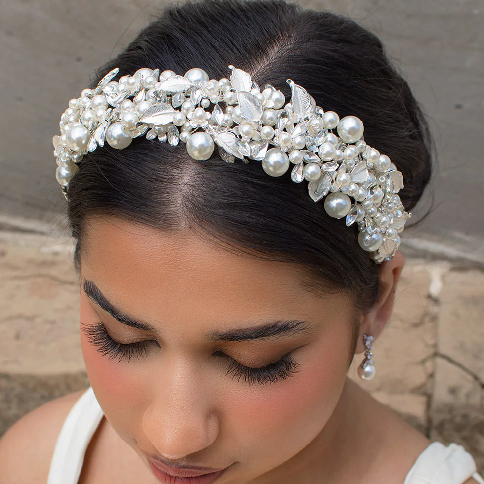 Please keep in mind, many of our luxurious pieces are handcrafted and can be styled either as a crown or as a headband to achieve your design, they are available in rhodium, silver, gold, and rose gold plating with beautiful coloured stones.