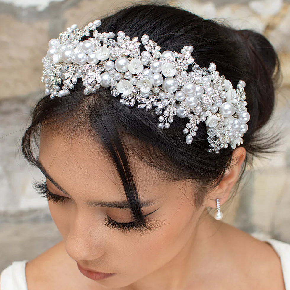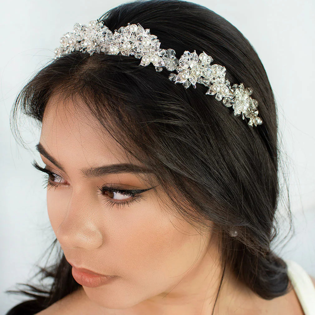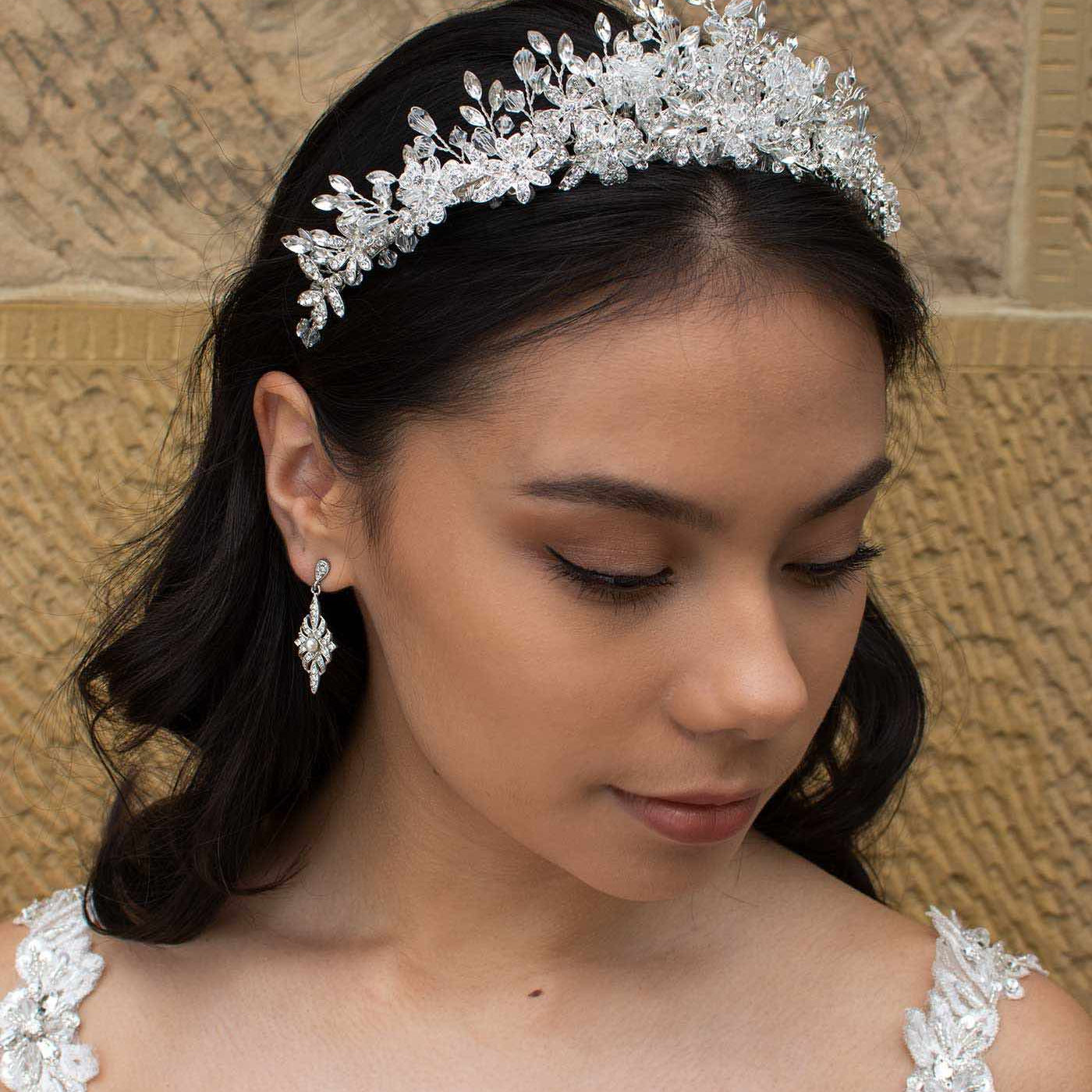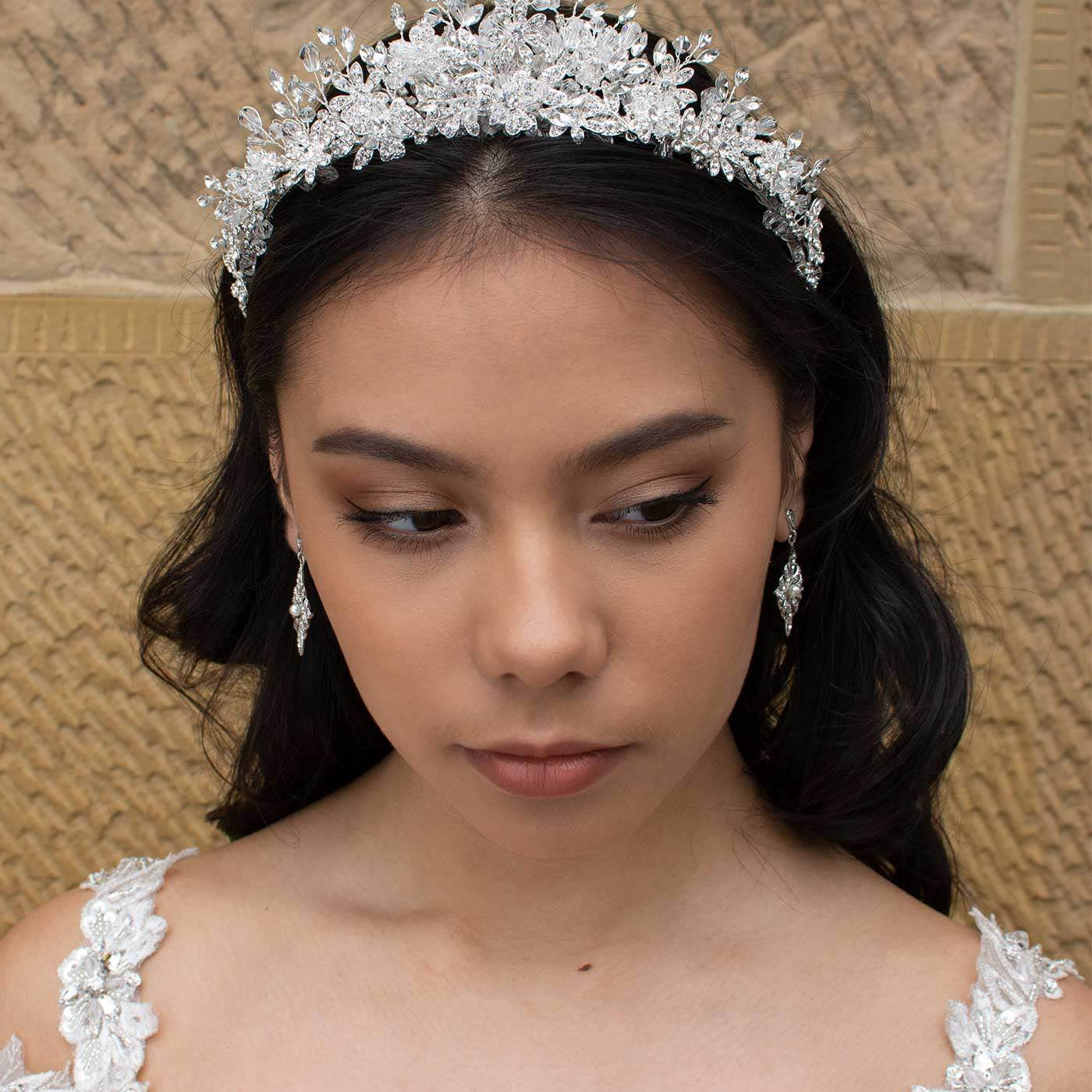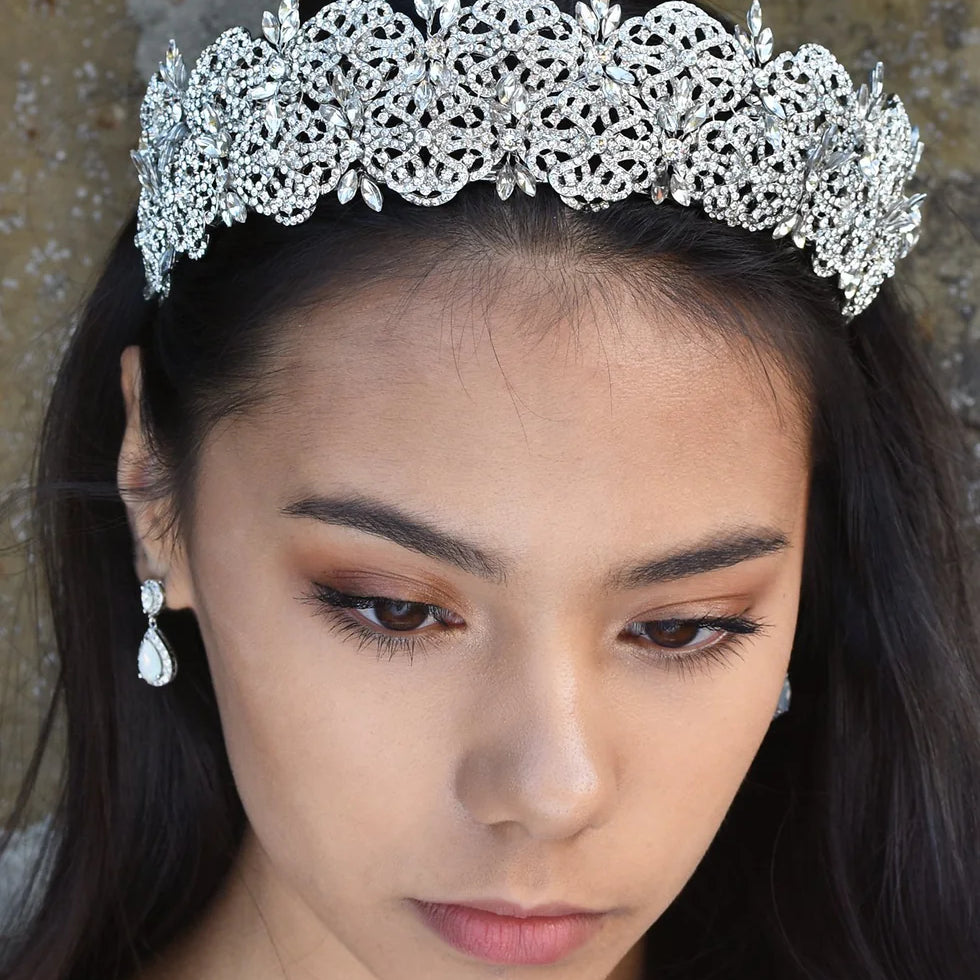 Please keep in mind, many of our luxurious pieces are handcrafted and can be styled either as a crown or as a headband to achieve your design, they are available in rhodium, silver, gold, and rose gold plating with beautiful coloured stones.