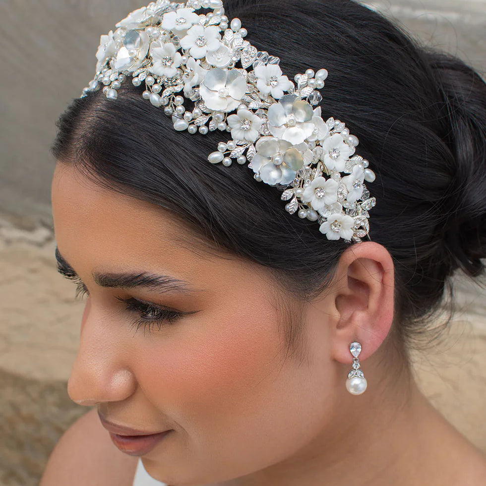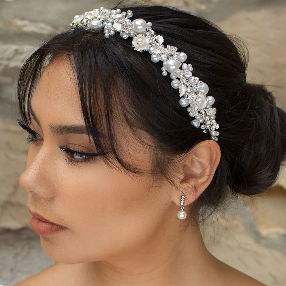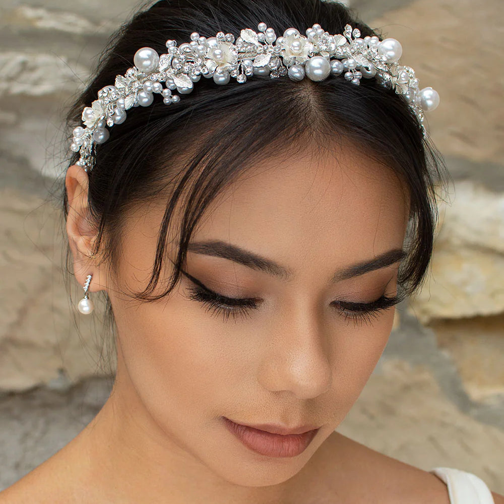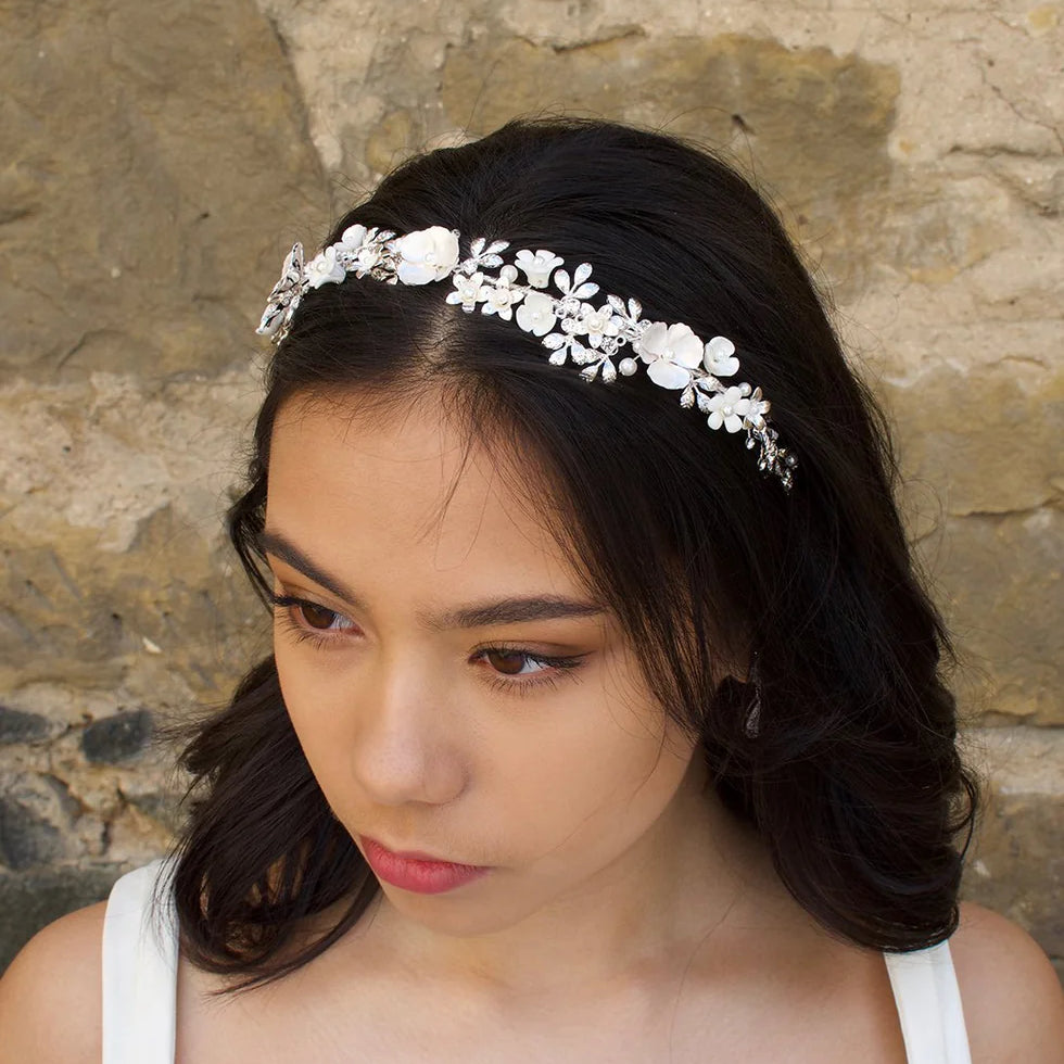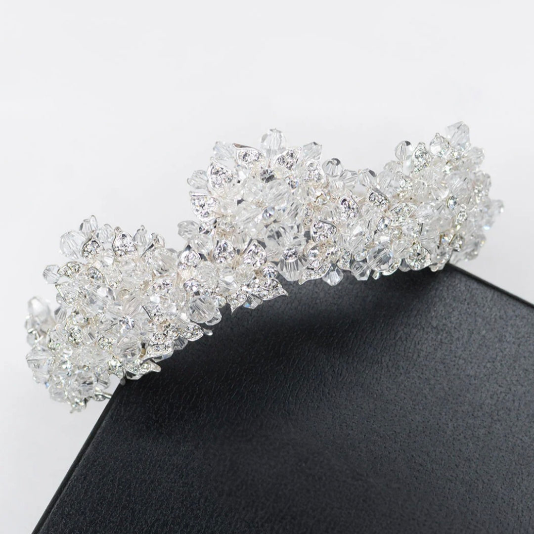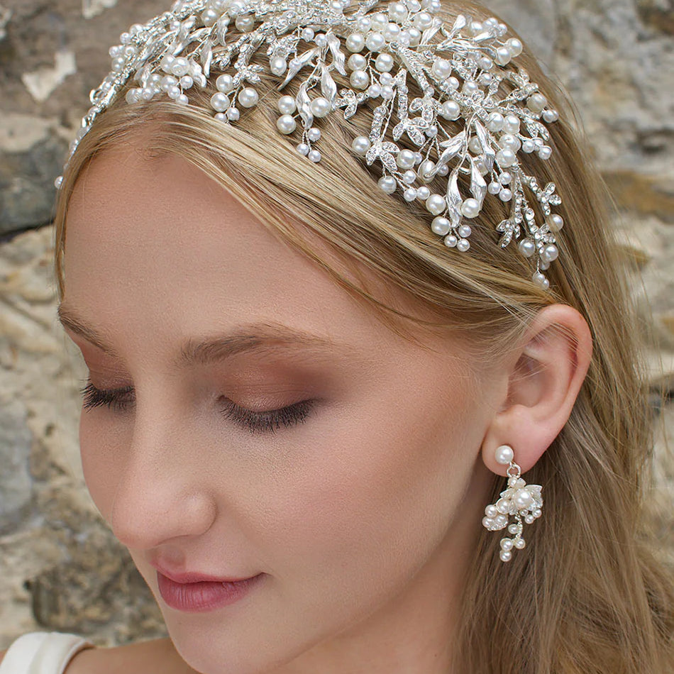 Please keep in mind, many of our luxurious pieces are handcrafted and can be styled either as a crown or as a headband to achieve your design, they are available in rhodium, silver, gold, and rose gold plating with beautiful coloured stones.
