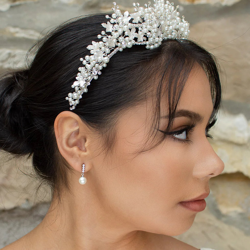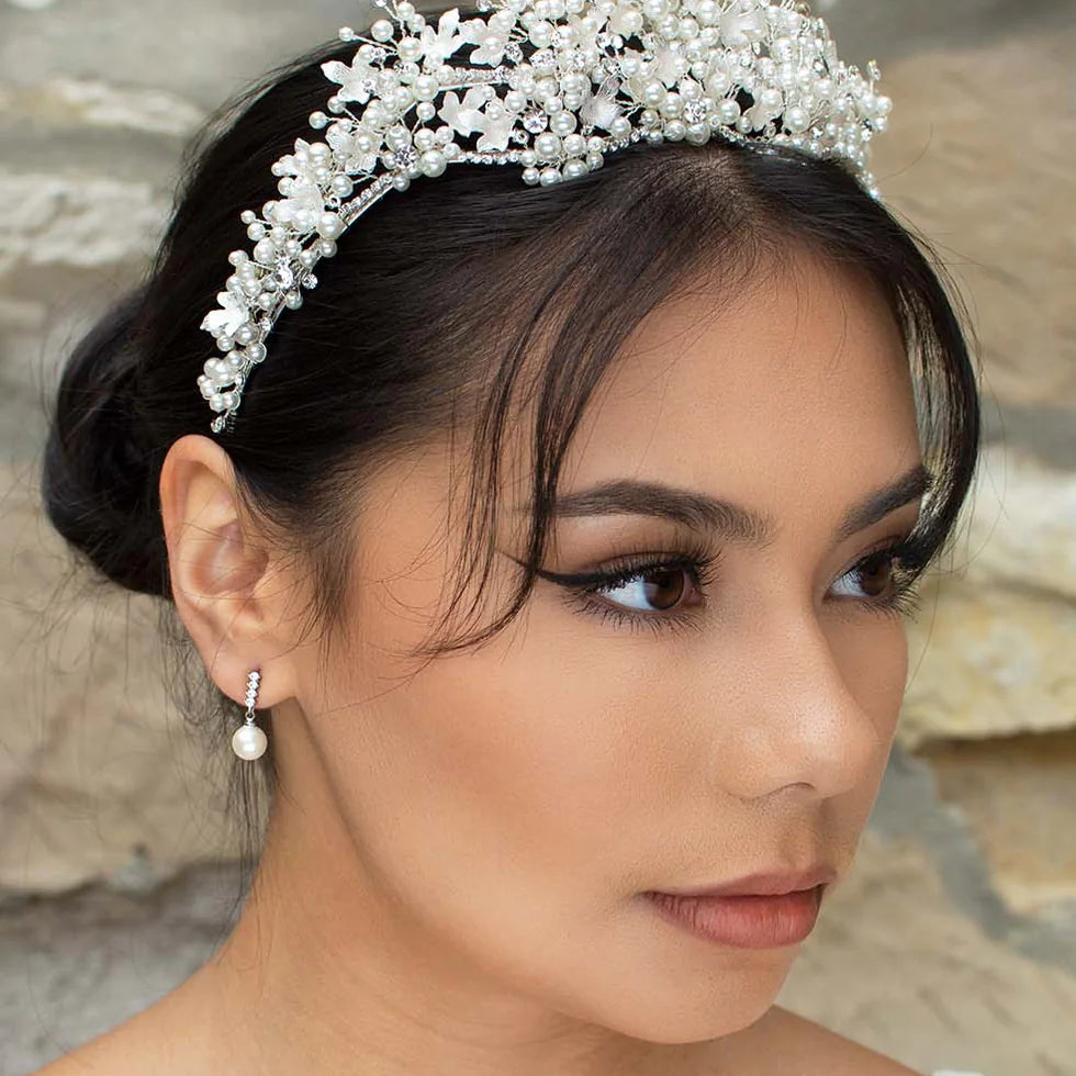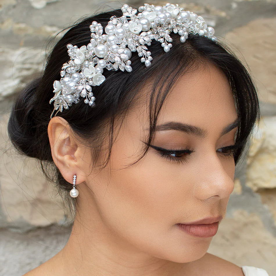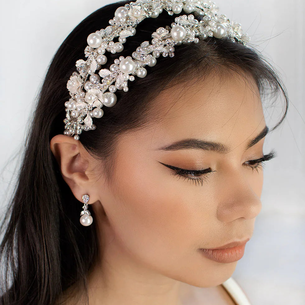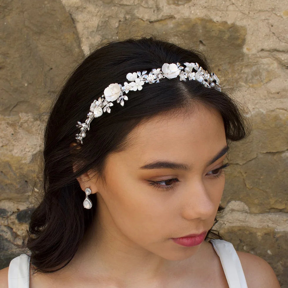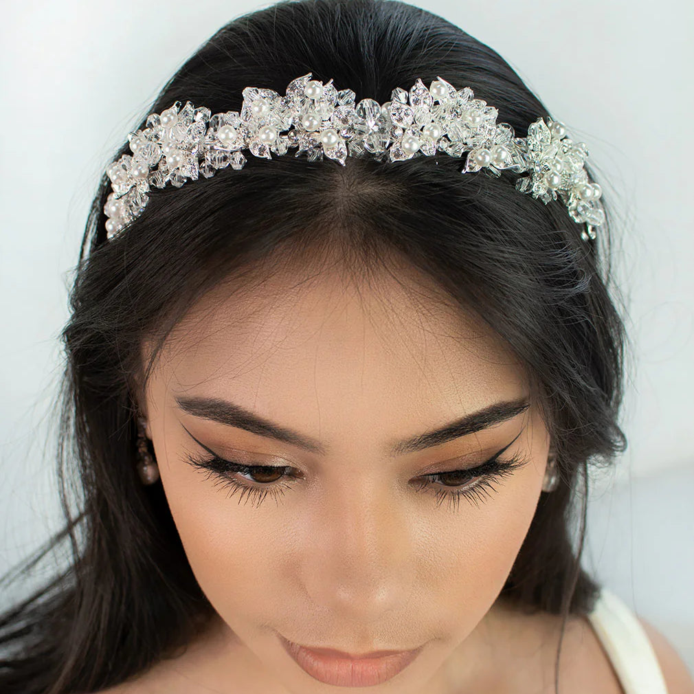 Please keep in mind, many of our luxurious pieces are handcrafted and can be styled either as a crown or as a headband to achieve your design, they are available in rhodium, silver, gold, and rose gold plating with beautiful coloured stones.