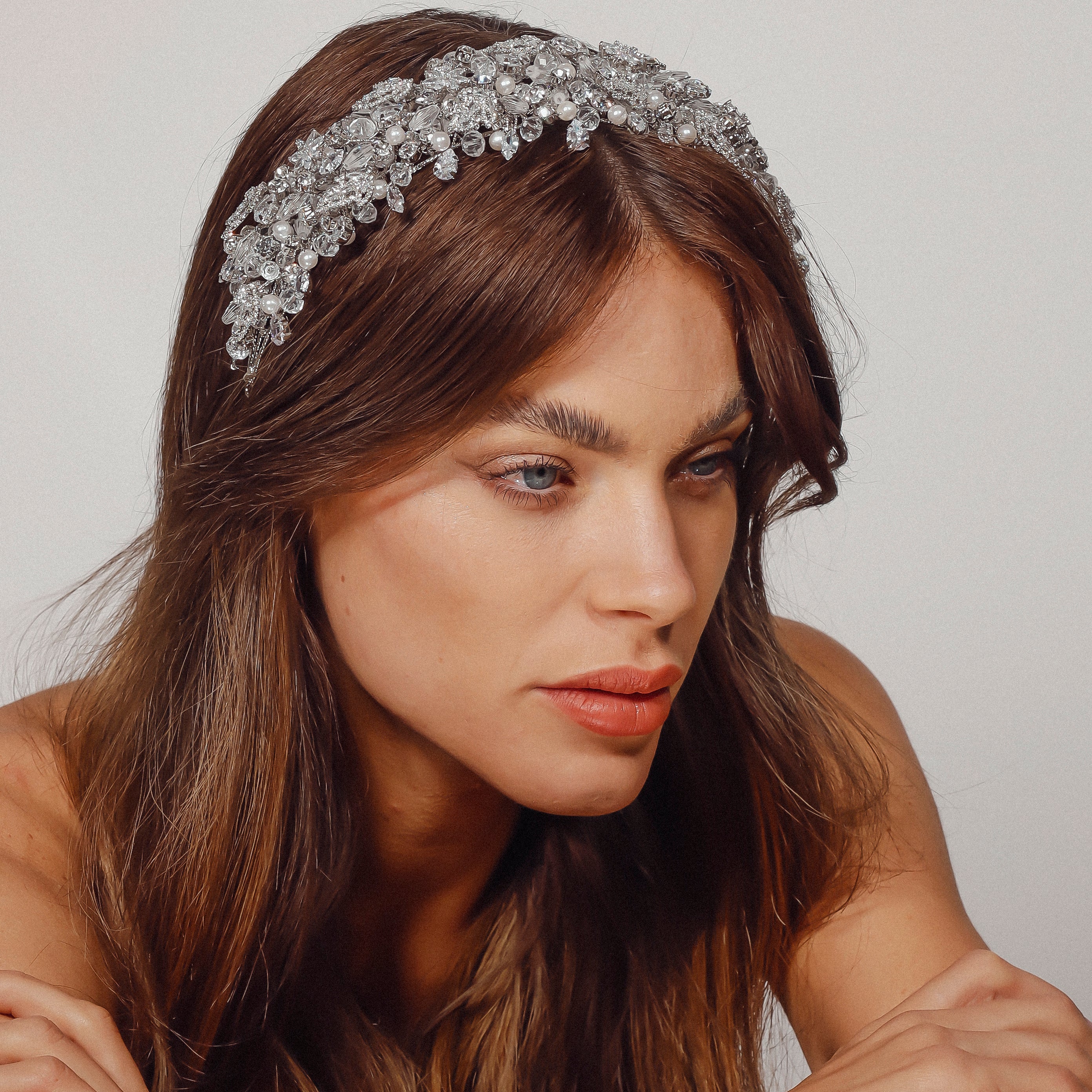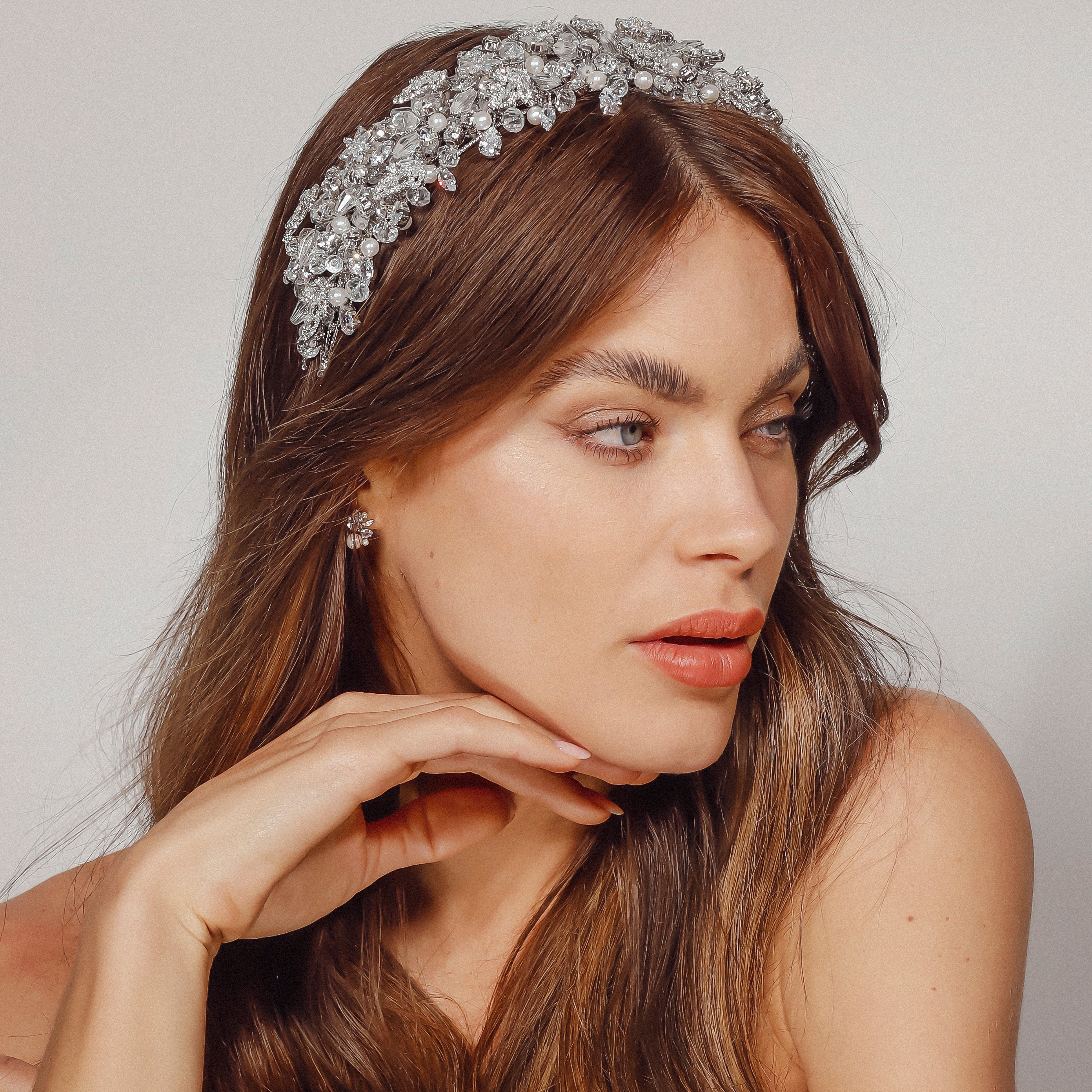The Almeria Headpiece offers a stunning touch of sophistication, making it the perfect accessory for any elegant occasion, adorned with AAA Cubic Zirconia, ensuring it catches the light with every movement. Whether for a wedding, gala, or special event, this crown will elevate your look with its timeless beauty.