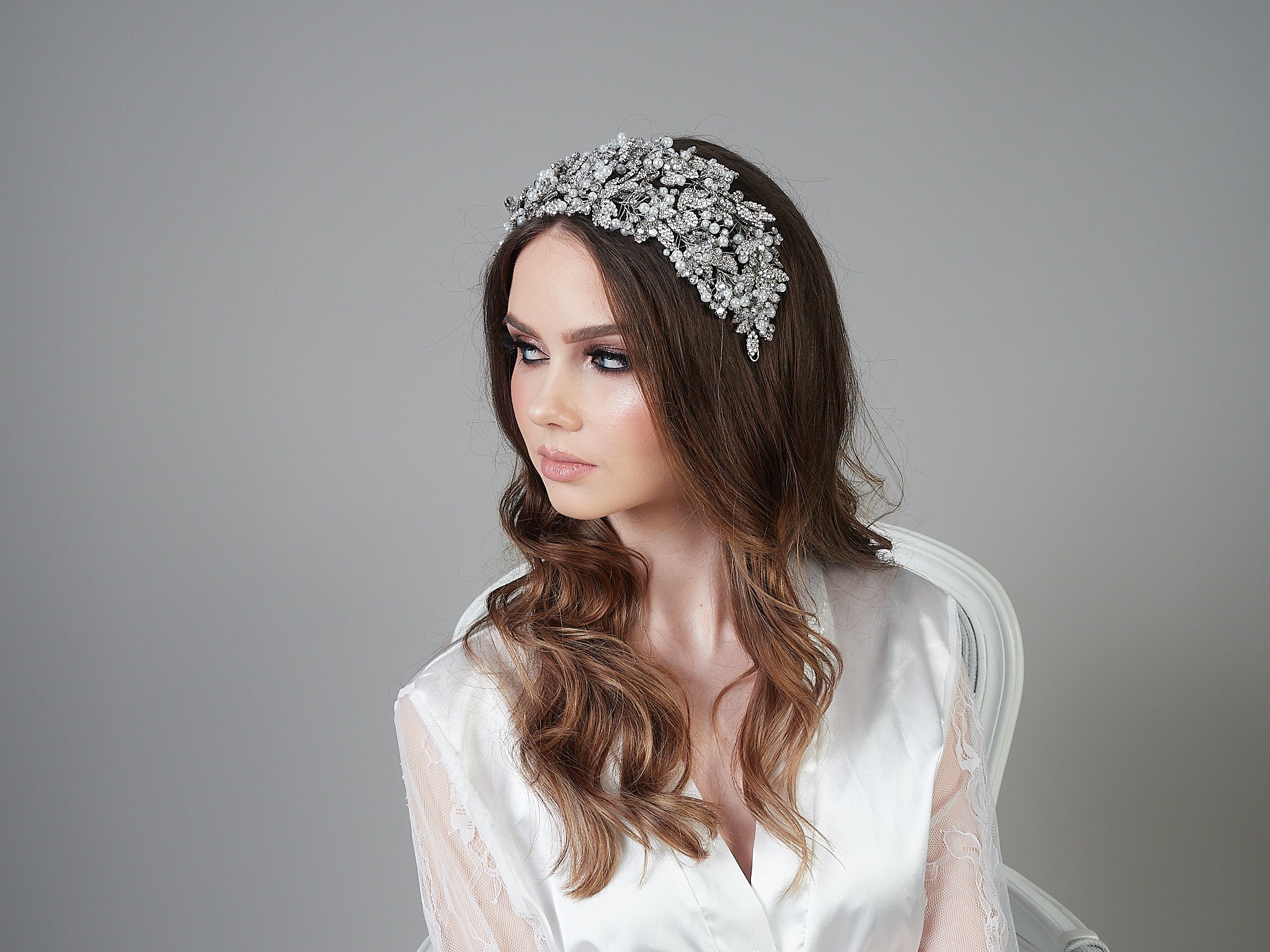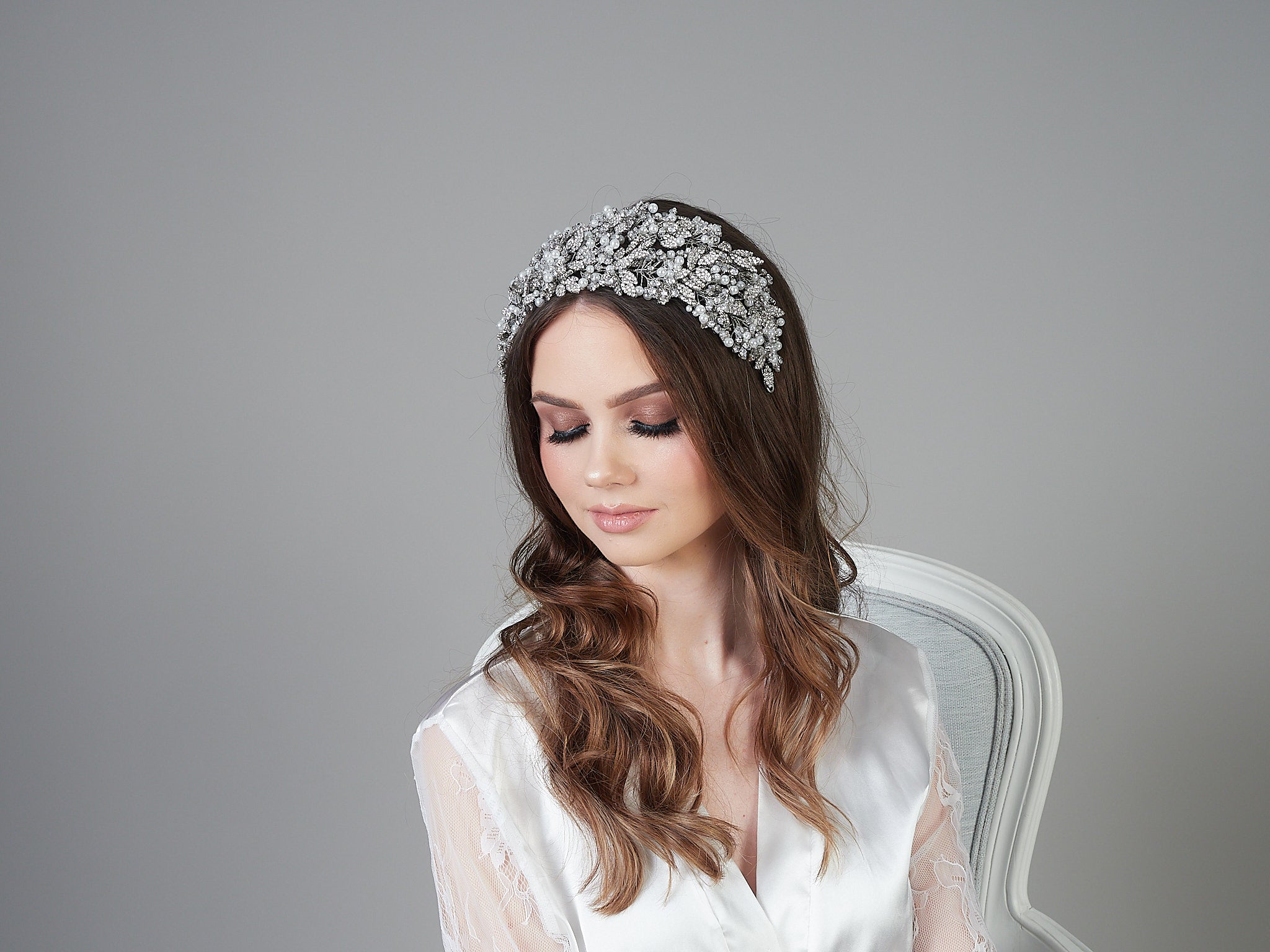 Crafted with exquisite precision, the Ashley Grande headpiece is an elegant and timeless piece. Made from high-quality crystals and pearls, this headpiece is adorned with radiant gemstones and intricate detailing. Its refined design and luxurious appearance make it perfect for weddings and special events.