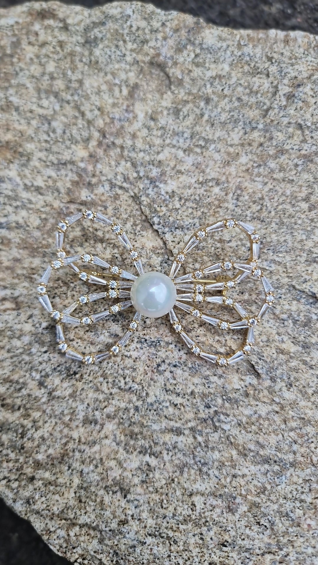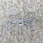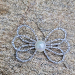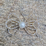 The Bowette Pin is a stunning and elegant accessory designed to bring a touch of sophistication and glamour to any look. Adorned with crystals and pearl, this pin features intricate detailing making it a perfect addition to your ensemble. Its timeless beauty adds a refined, luxurious feel, ideal for a statement piece to complement their attire.
