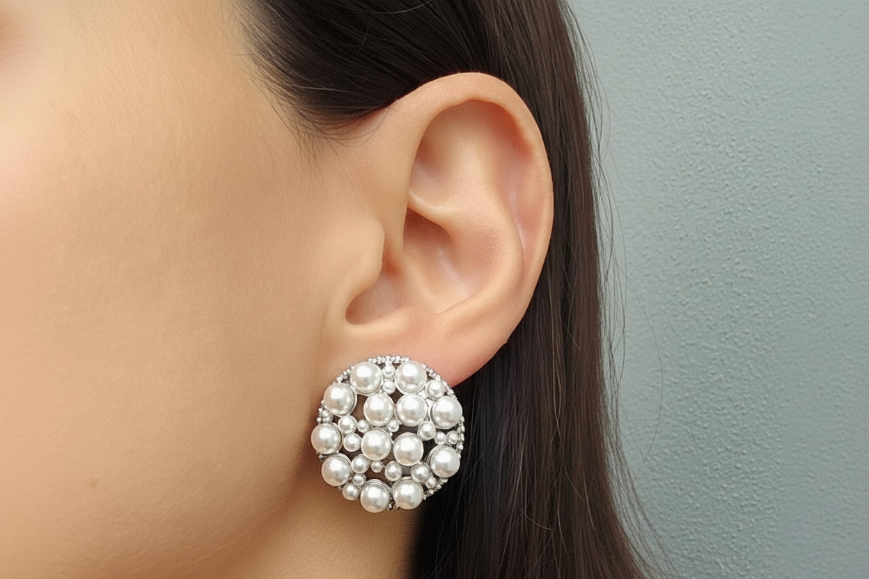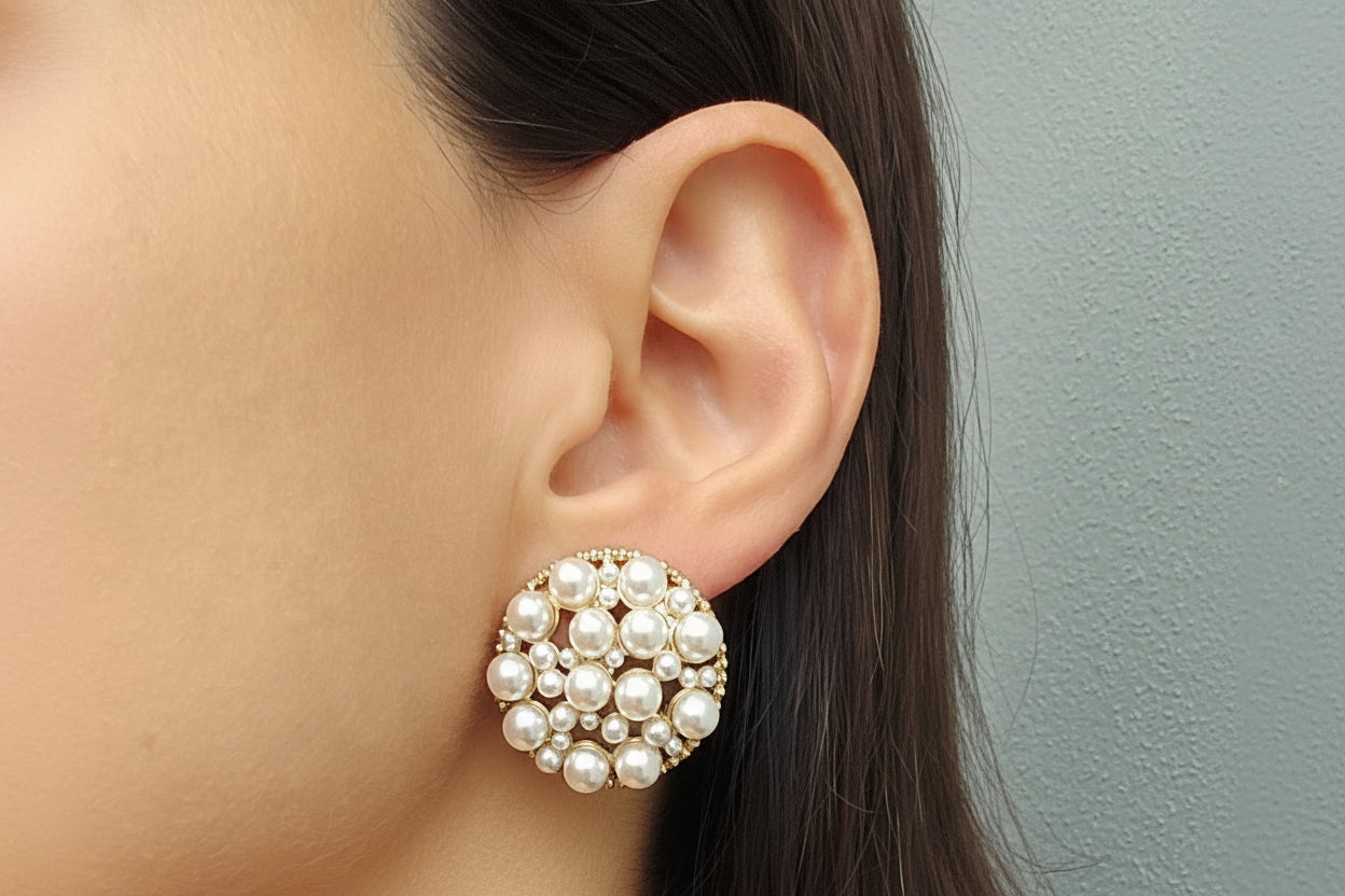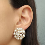 Elevate your elegance with our stunning Charlene Earrings, featuring a captivating floral design consisting of pearls, meticulously arranged to create a striking visual impact. These earrings cater to various style preferences and occasions.