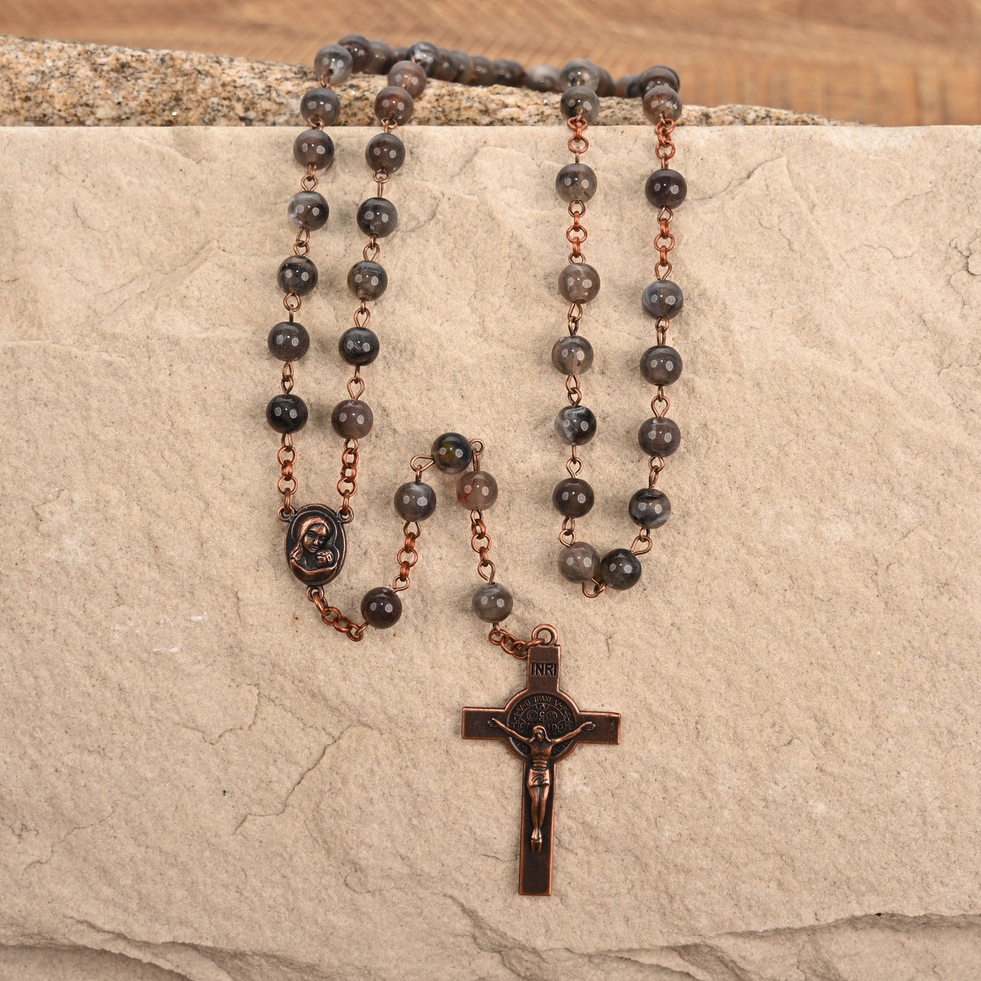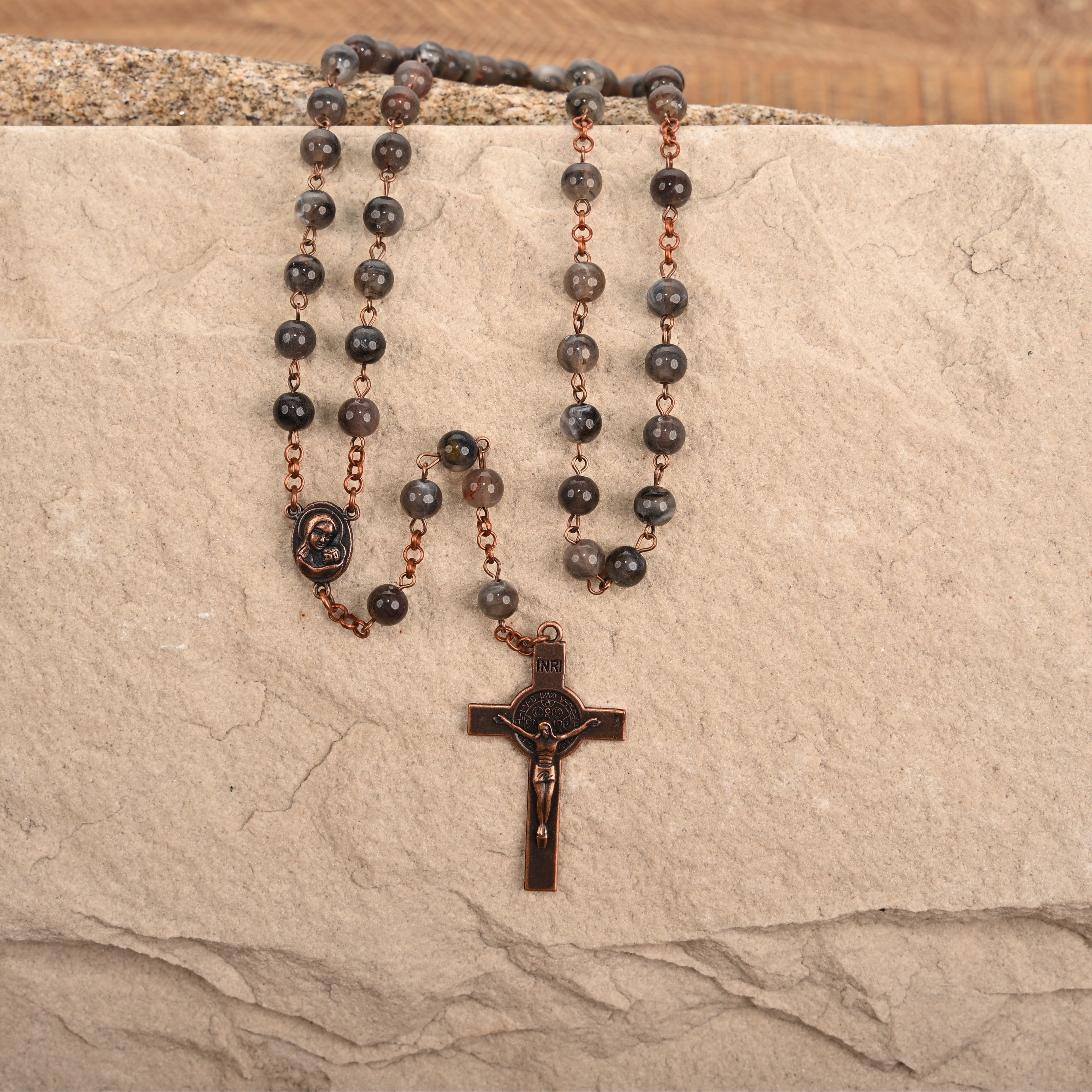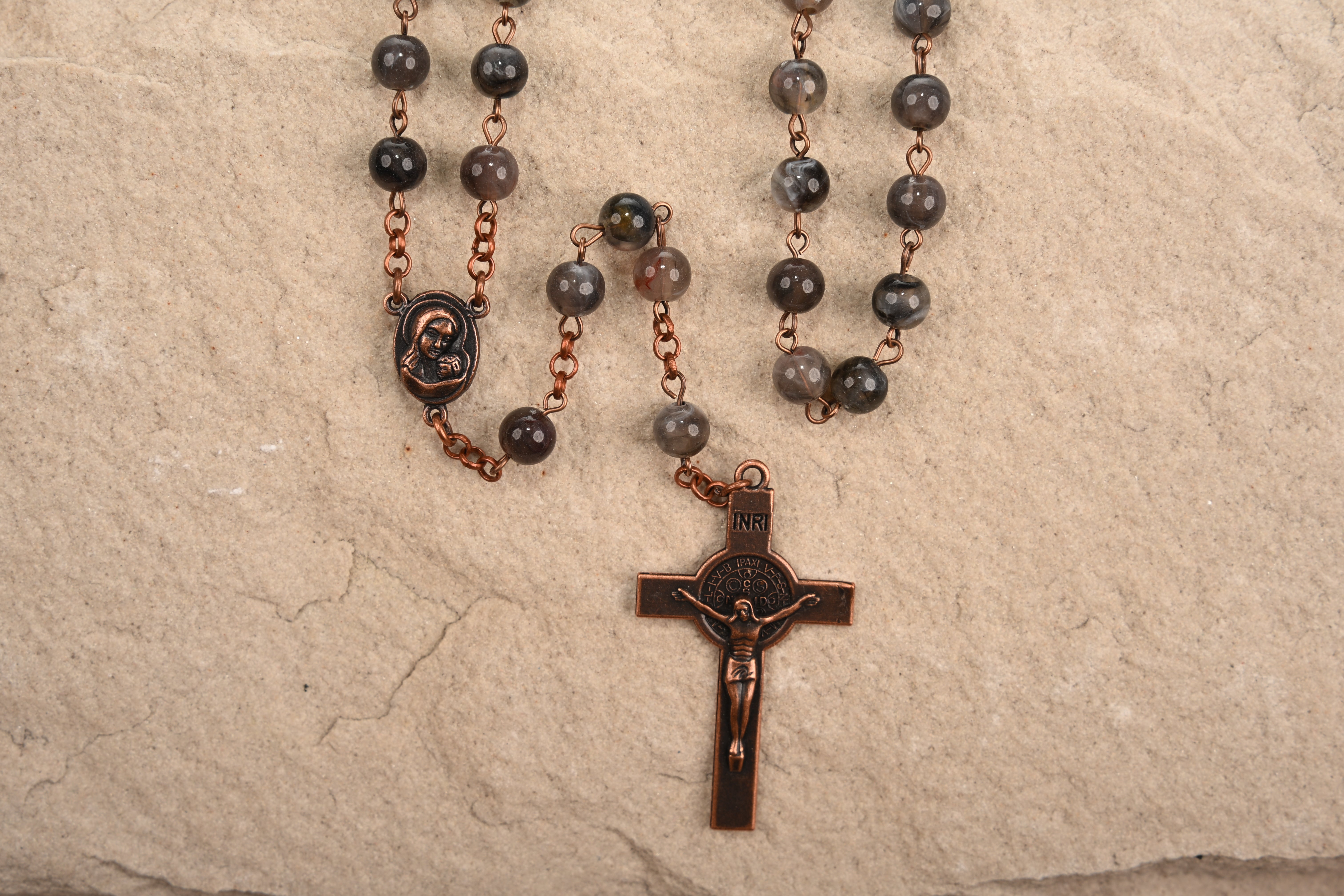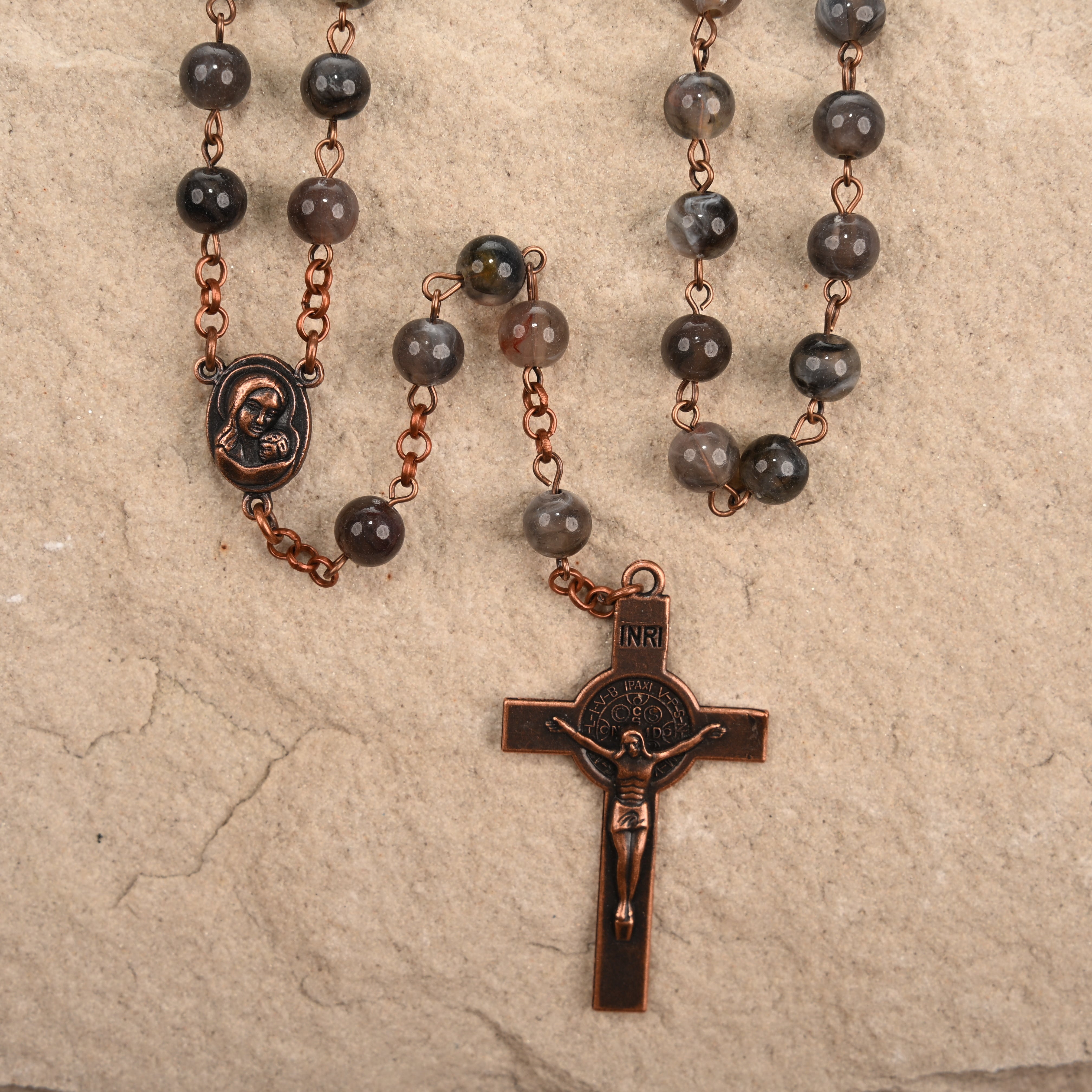 The Communion Rosary is a full length elegant design, crafted with 8mm gemstones, this piece serves as both a spiritual and a sophisticated accessory. Perfect for both daily use and special occasions, the Communion Rosary is a meaningful gift or personal keepsake.