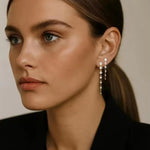 Introducing the Crystal Drop Duo Earring, a stunning addition to any Jewellery collection. Featuring a cascade of crystal drop, these earrings are designed to capture light and attention, making them the perfect statement piece.
