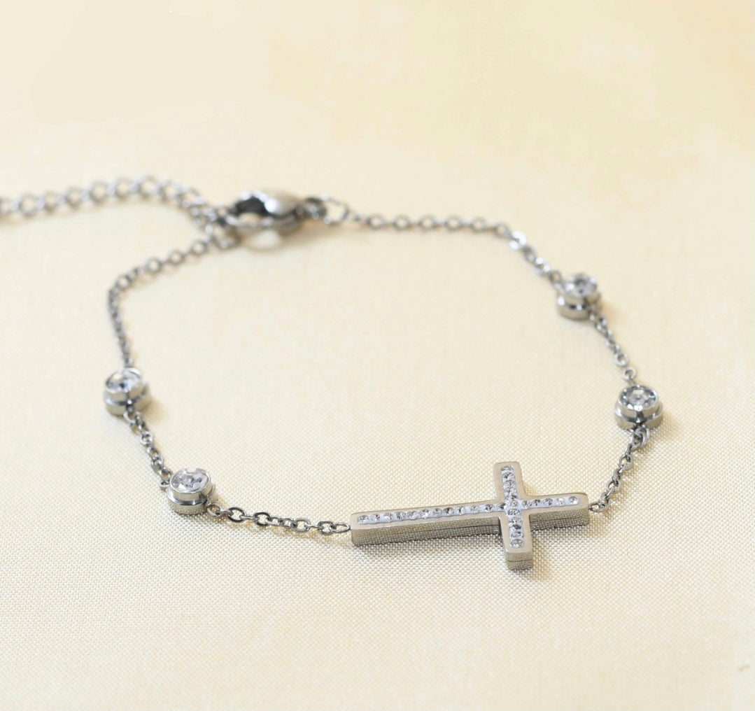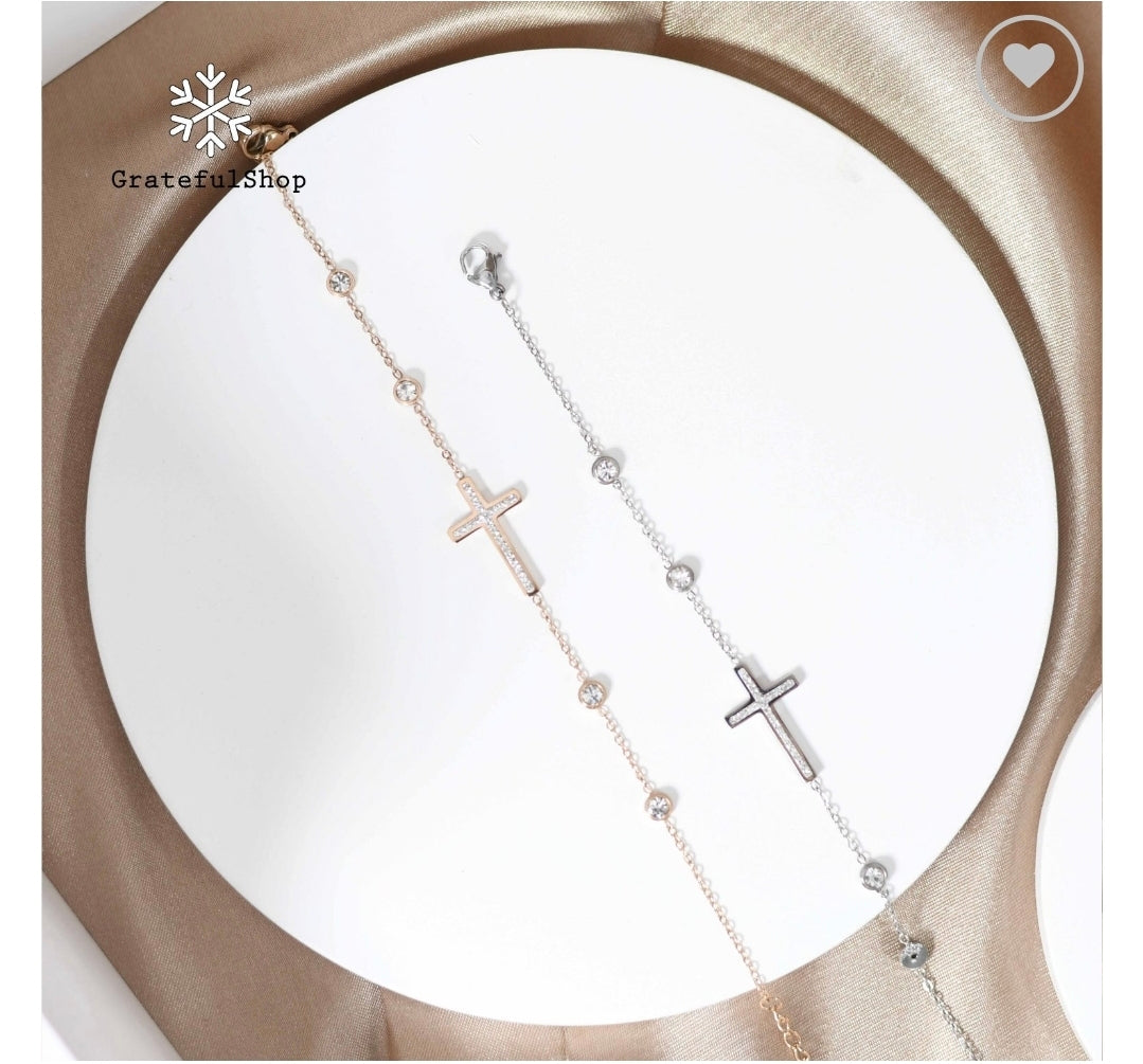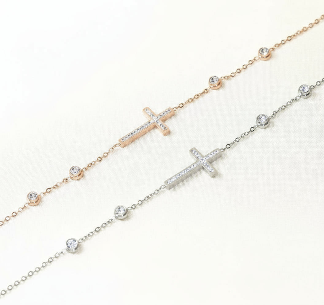 Introducing the elegant Cyprus Bracelet, featuring a stunning polished cross with stones with beautifully placed round stone not far from it, whether you're dressing up for a special occasion or adding a touch of glamour to your everyday attire, these bracelets are the perfect accessory to elevate your style.
