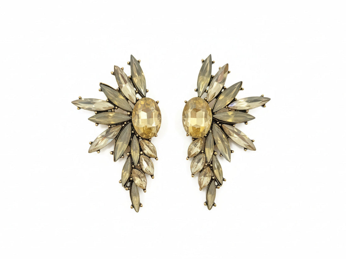 The Delight Earrings are a stunning showcase of crystals, intricately arranged to create an eye-catching, artistic design. Their unique shapes make them a perfect statement piece for any occasion.