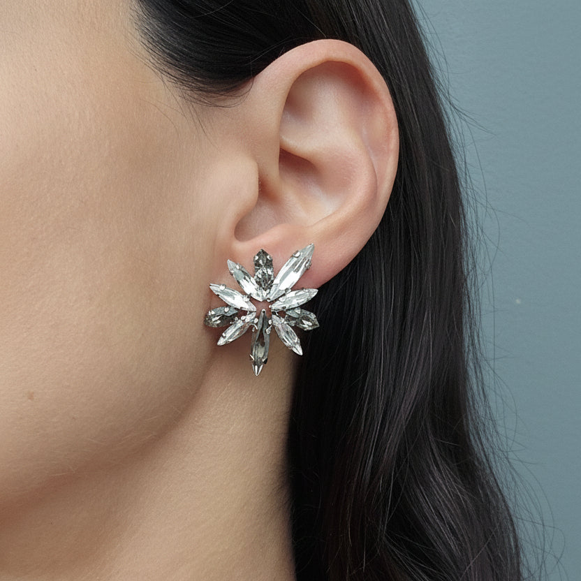 The Desdemona Earrings are a statement of elegance, featuring sparkling marquise shaped crystals that glimmer with every movement, these earrings are designed to elevate your ensemble with their glamorous and timeless appeal.