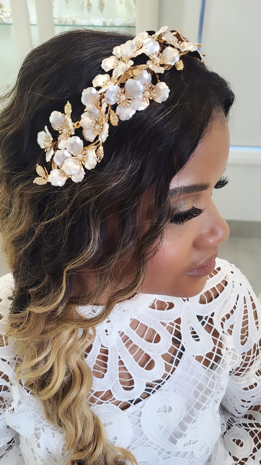 - Elegant Design: The Eleanora Headband showcases an intricate floral motif adorned with pearls and gold accents, creating a captivating and sophisticated look.