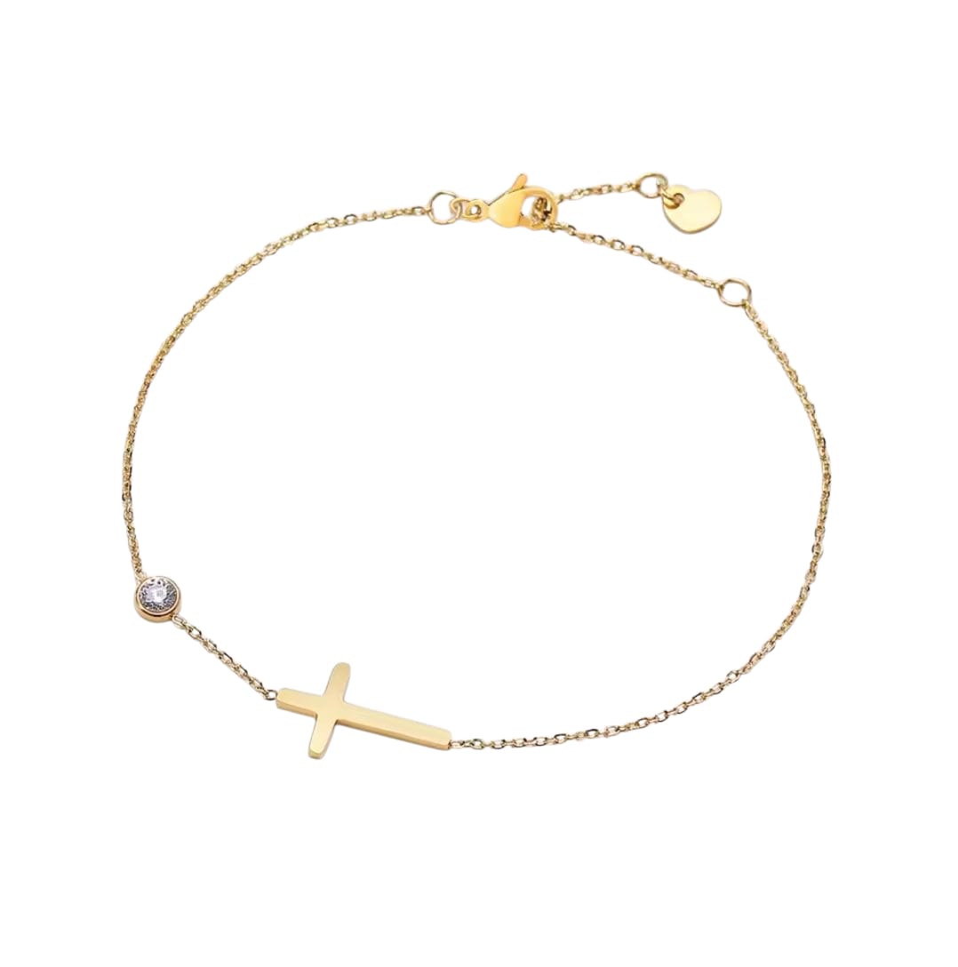 Introducing the elegant Florida Bracelet, featuring a stunning polished cross with beautifully placed round stone not far from it, whether you're dressing up for a special occasion or adding a touch of glamour to your everyday attire, these bracelets are the perfect accessory to elevate your style.