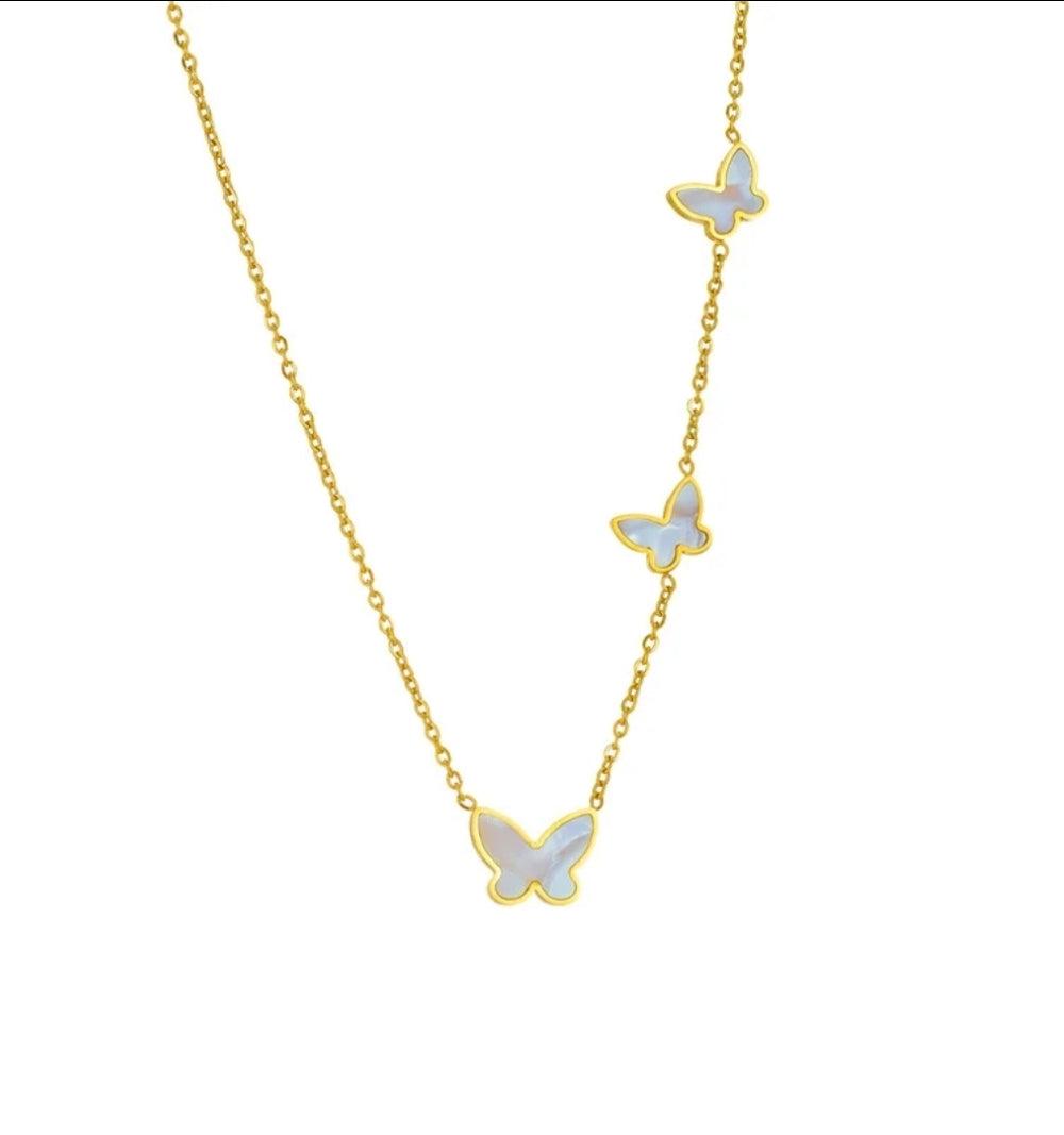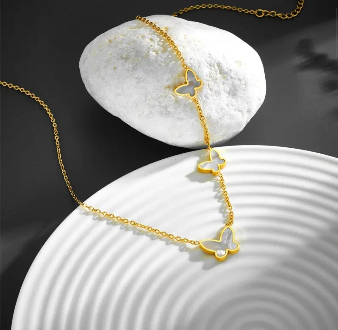 The Flutter Necklace exude elegance with its simple design with a stunning flutter of 3 butterflies pendants. Perfect for any occasion or for keepsake.
