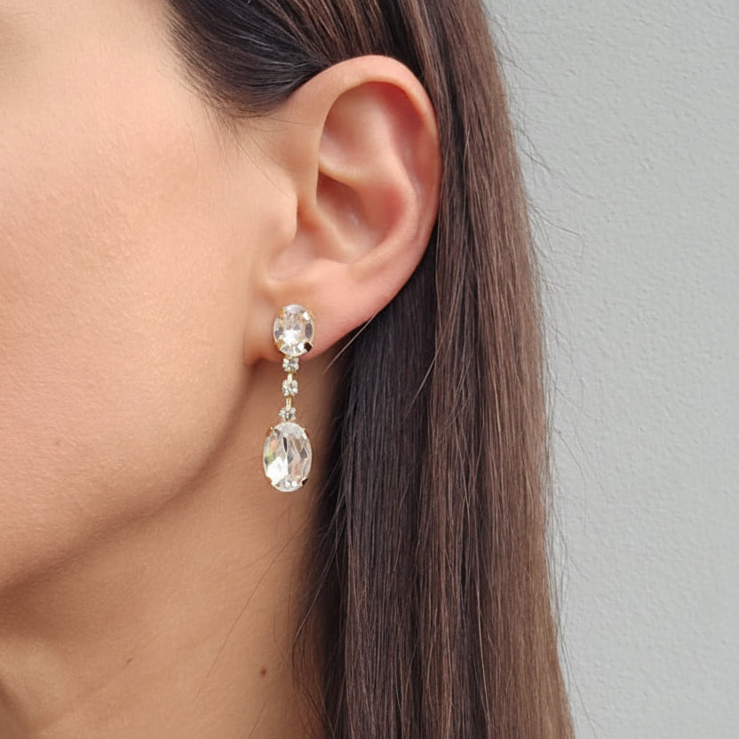 The Harleen Earrings are the epitome of elegance, featuring a captivating design that is perfect for both formal and special occasions. The oval and round stones create a stunning focal point that adds a touch of luxury and sophistication to any look, making them a must-have accessory for anyone looking to make a lasting impression.