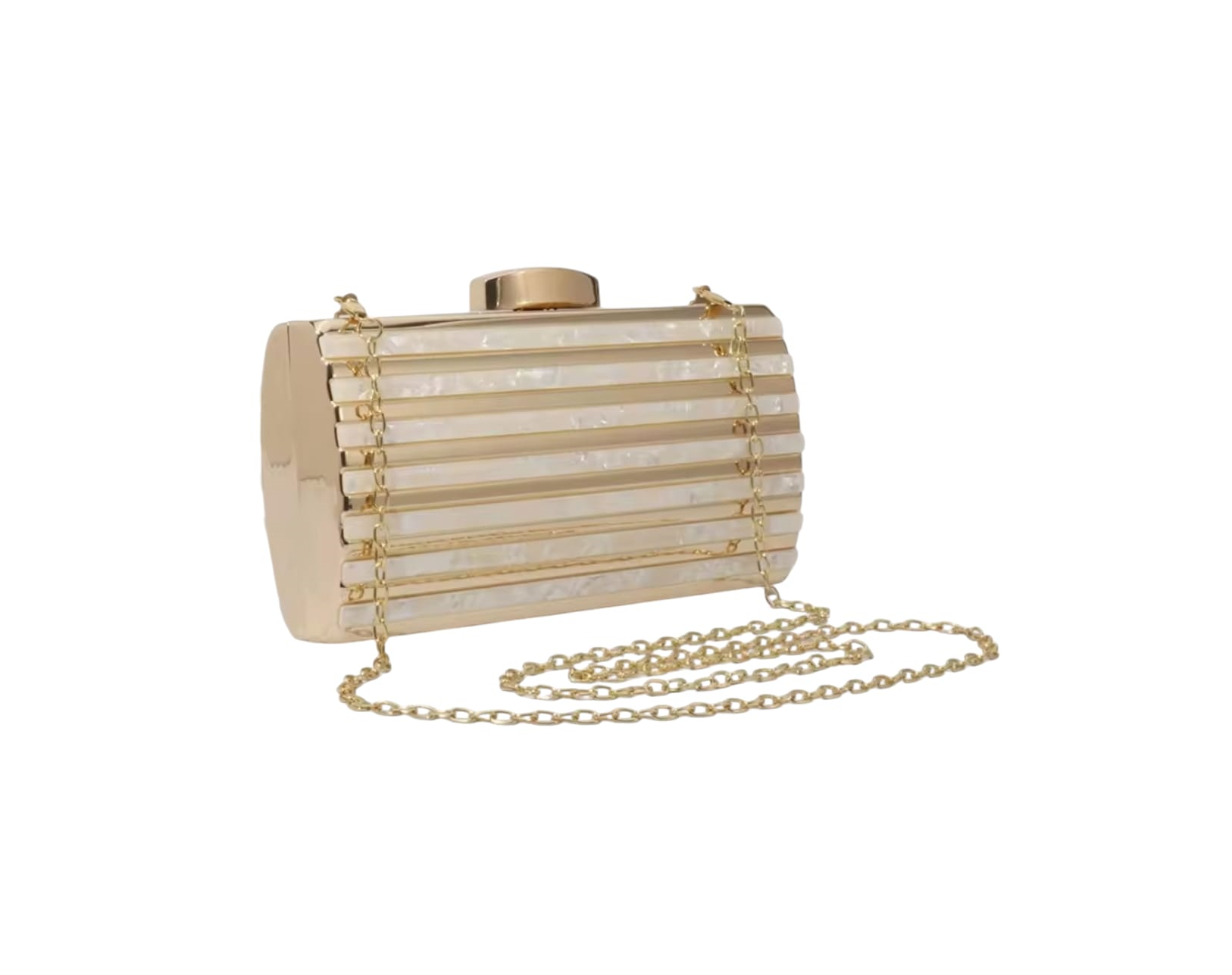 Introducing our exquisite Harlyn Clutch, a stunning accessory that perfectly blends elegance and sophistication. The intricate design creates a captivating visual texture that catches the light beautifully, making it a perfect companion for evening gowns or cocktail dresses.