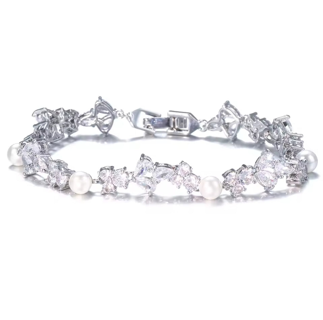The Hendra Bracelet is a sophisticated and timeless accessory, designed to add a touch of elegance to any outfit. Adorned with a combination of dazzling teardrop-shaped crystals and lustrous pearls, this bracelet creates a beautiful contrast that is both glamorous and refined. Crafted with precision and care, it is perfect for special occasions or as a daily statement piece.