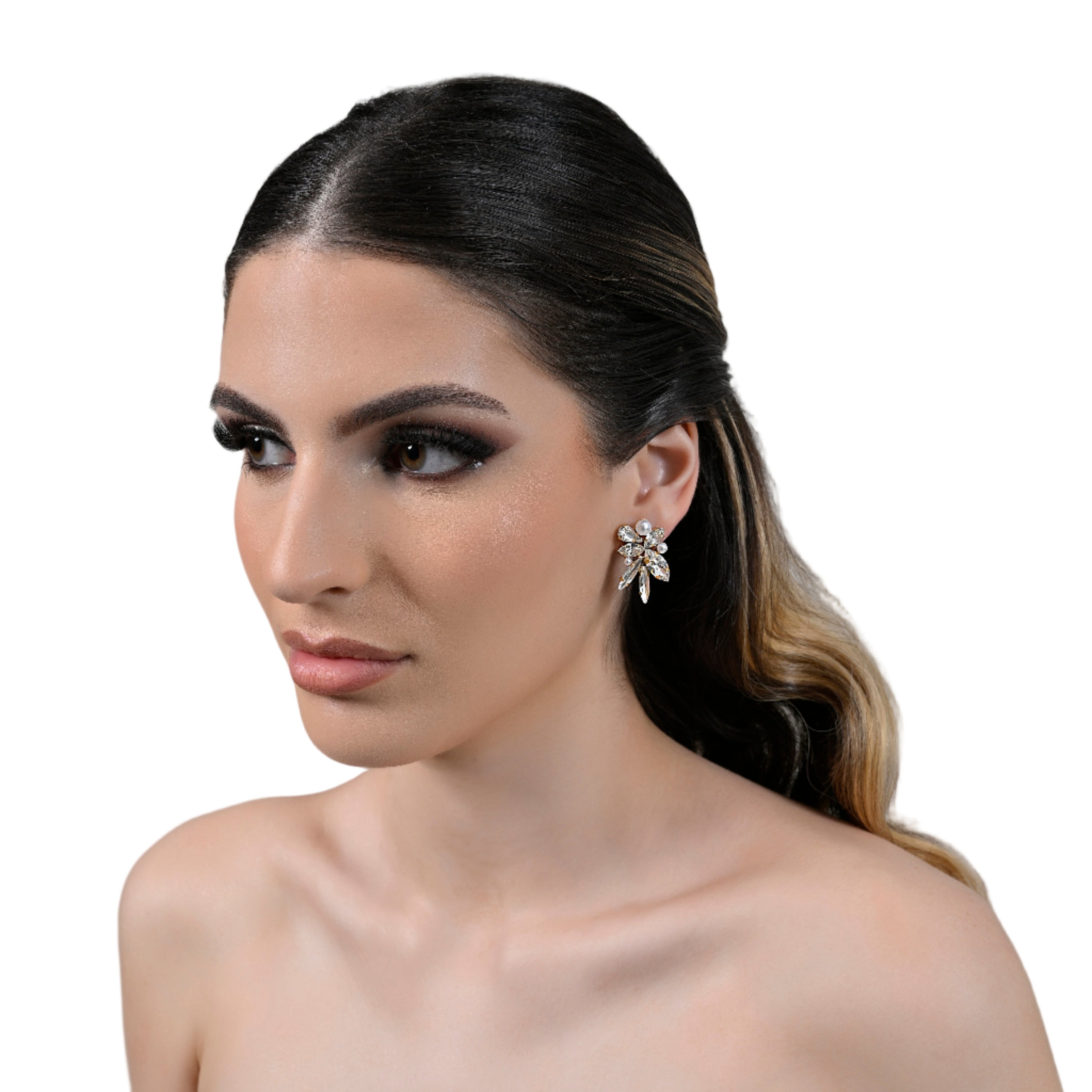 The Idalia Pearl Earrings are a statement of elegance, featuring sparkling marquise and round-shaped cubic zirconia stones with pearls that glimmer with every movement, these earrings are designed to elevate your ensemble with their glamorous and timeless appeal.