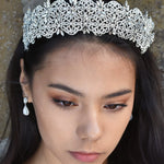 Our Jana Headpiece is an openwork with a delicate lace like pattern that forms a series of connected sections heavily embellished with sparkling stones, making it a beautiful unique piece for your special occasion.