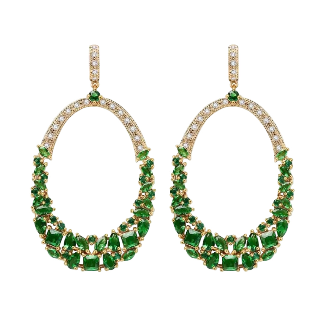 The Jessy Emerald Earrings are the epitome of sophistication making them the perfect statement accessory for any occasion. The Jessy Emerald Earrings combine elegance with modern style, making them an ideal choice for weddings, evening events, or any special occasion. The intricately placed stones sparkle with every movement, catching the light and adding a touch of glamour to your ensemble.