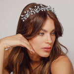 The Kaluga Headpiece is a beautiful piece, adorned with AAA grade cubic zirconia and lustrous pearls. Its delicate and intricate design makes it an ideal accessory for adding a touch of elegance and sparkle to any special occasion, whether a wedding, formal event, or a glamorous celebration.