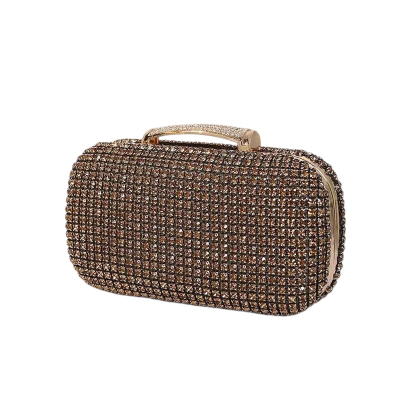 The Lalita Champagne Clutch is the epitome of sophistication, featuring a glamorous design covered in sparkling rhinestones. This elegant accessory is perfect for adding a touch of luxury to any evening outfit. With its sleek rectangular shape and delicate rectangular clasp, the Lalita Champagne Clutch is a timeless statement piece that will shine at any formal event, wedding, or gala.