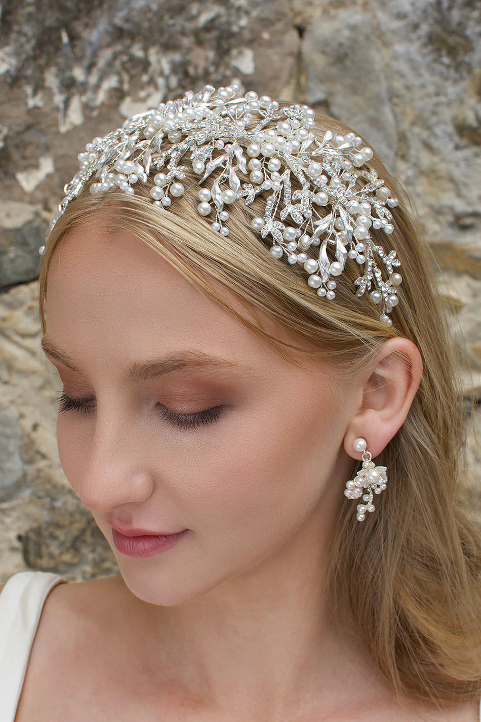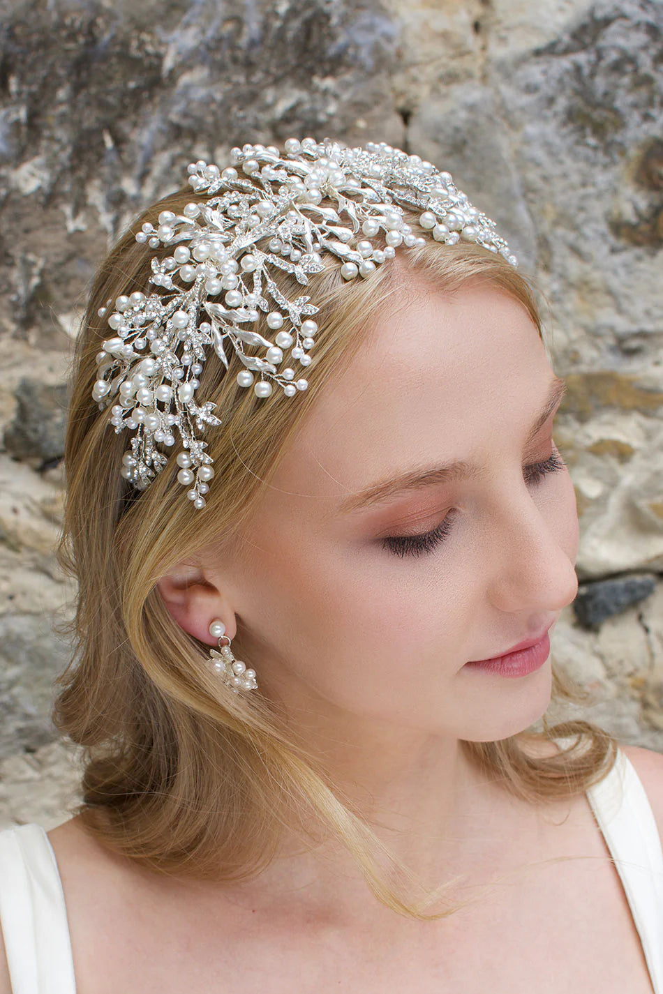 Our Linda Headpiece is a gorgeous wide-style headband with vines that stretch out with pearls and crystals creating a beautiful effect is the perfect way to complete your bridal look