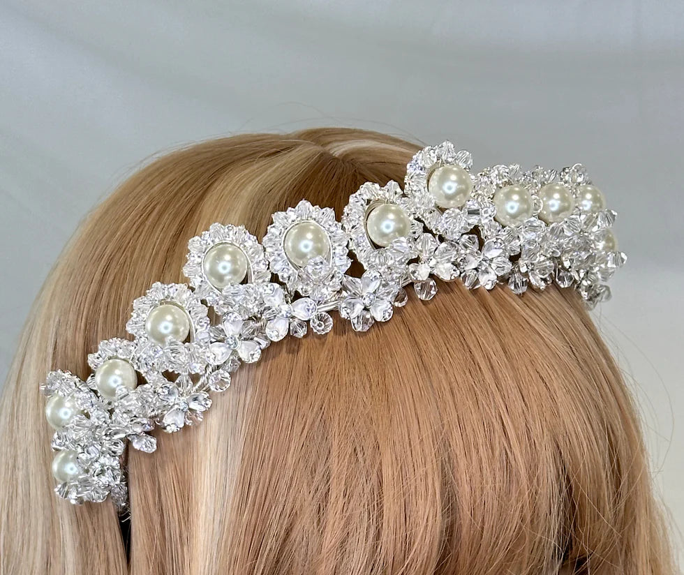 Our beautiful Lowrie crown is beautifully crafted with two styles, crystals only and crystals and pearls, an option allowing you to choose the right style for you your event.