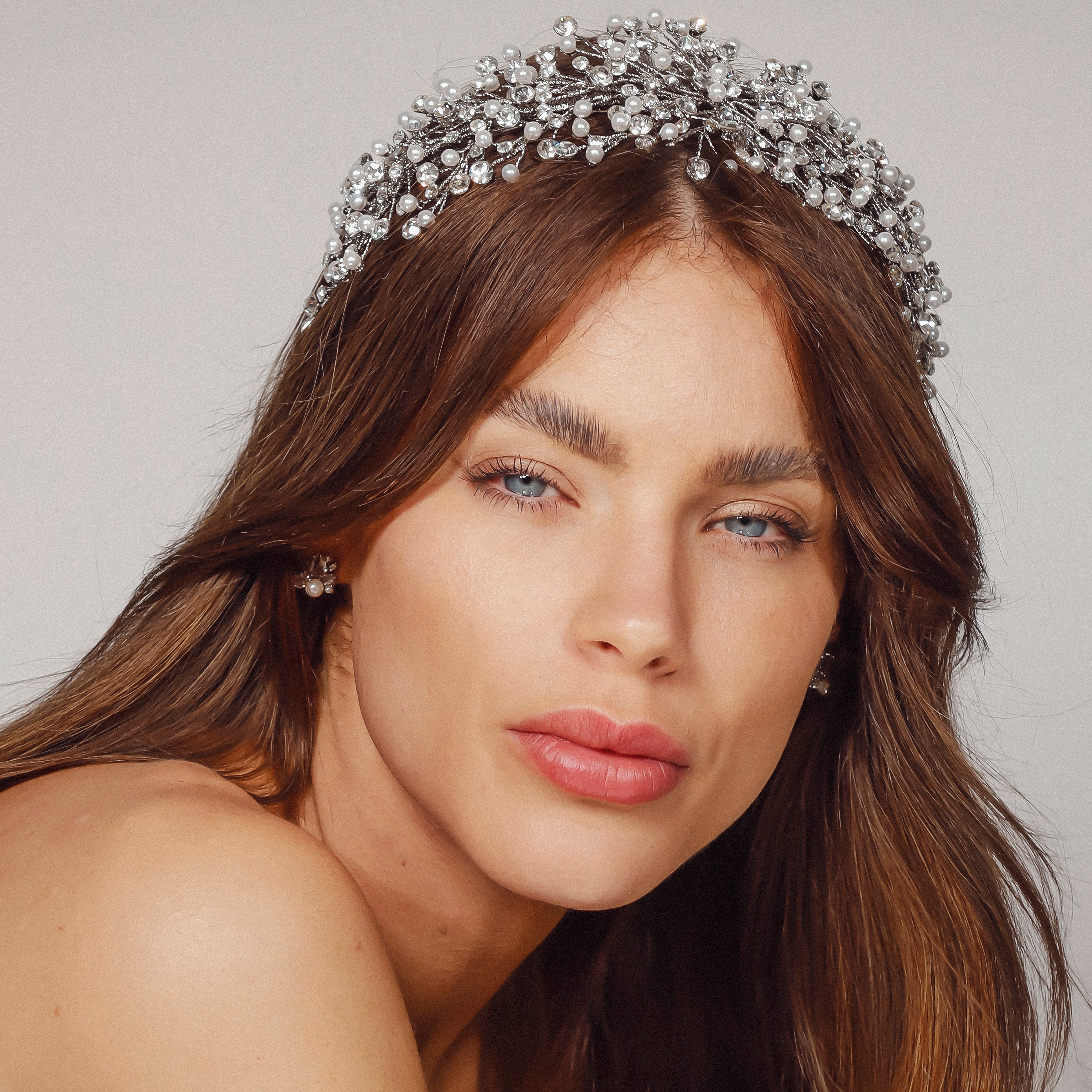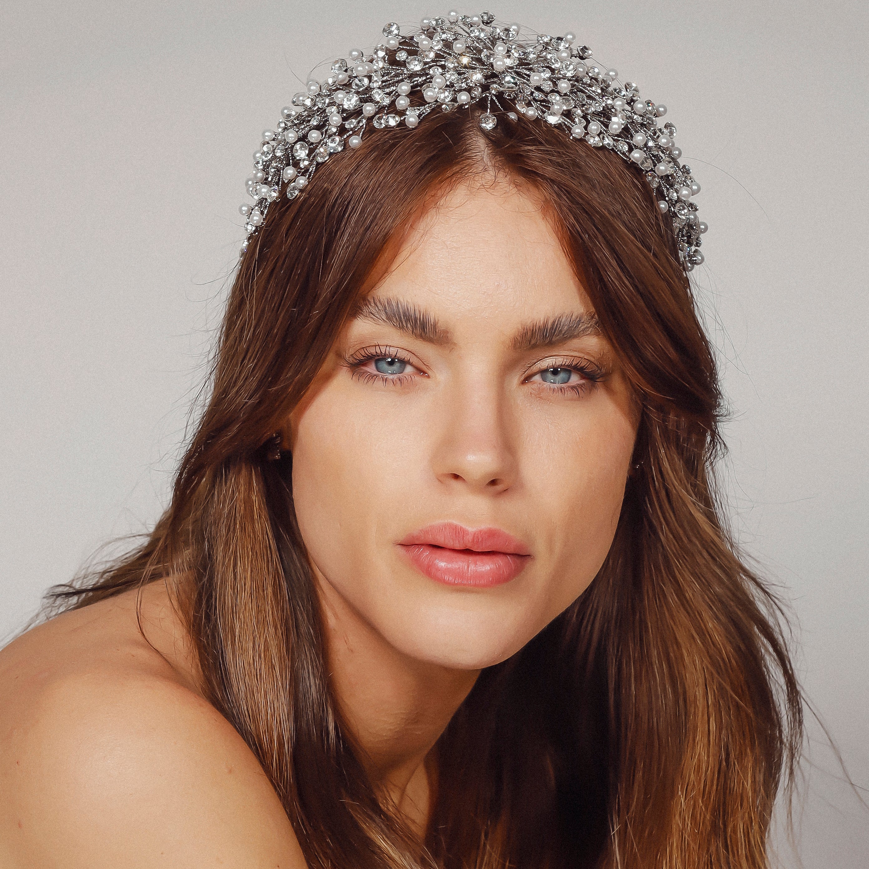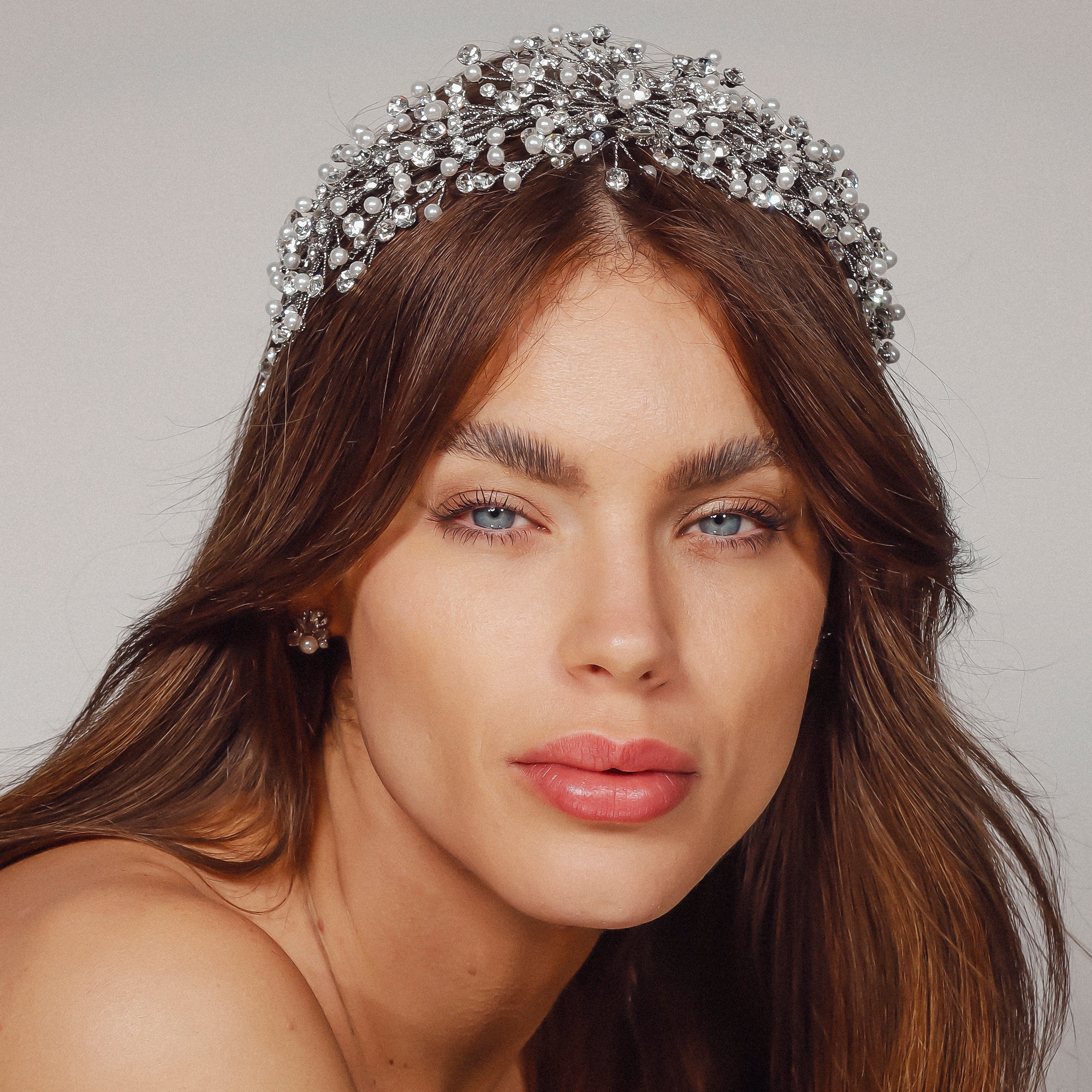 The Lucerne Headpiece is a stunning creation crafted from Rhodium, Gold, Rose Gold, or Silver plating, adorned with AAA grade cubic zirconia and luminous pearls. Its intricate design reflects sophistication and elegance, making it the perfect accessory for weddings, formal occasions, or adding a touch of luxury to your special day.