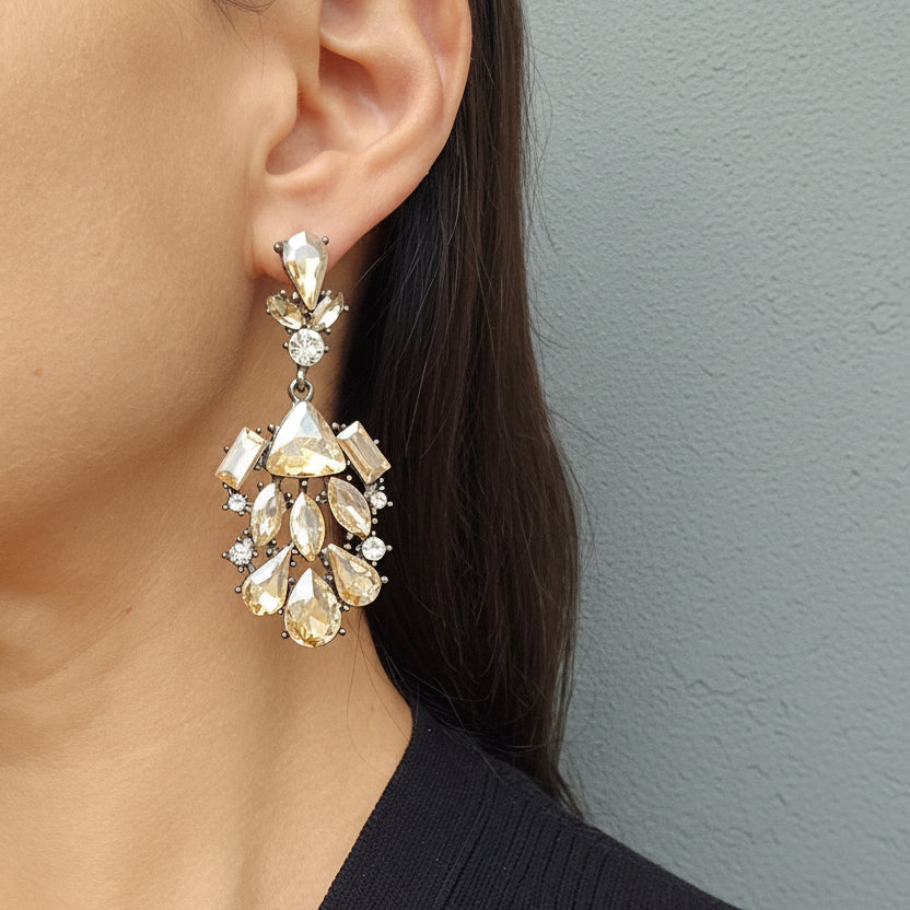 - Versatile Wear: Perfect for both daytime elegance and evening glamour, the Maddison Champagne earrings will effortlessly enhance your look for any occasion.