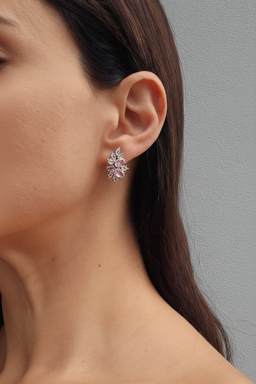 Transform your look with the stunning Misty Earrings, featuring a dazzling combination of clear marquise and teardrop cubic zirconias and oval pink stones. These earrings exude elegance and luxury, making them the perfect accessory for both evening elegance and special occasions. Crafted with intricate attention to detail, they offer a timeless design that speaks of grace and sophistication.