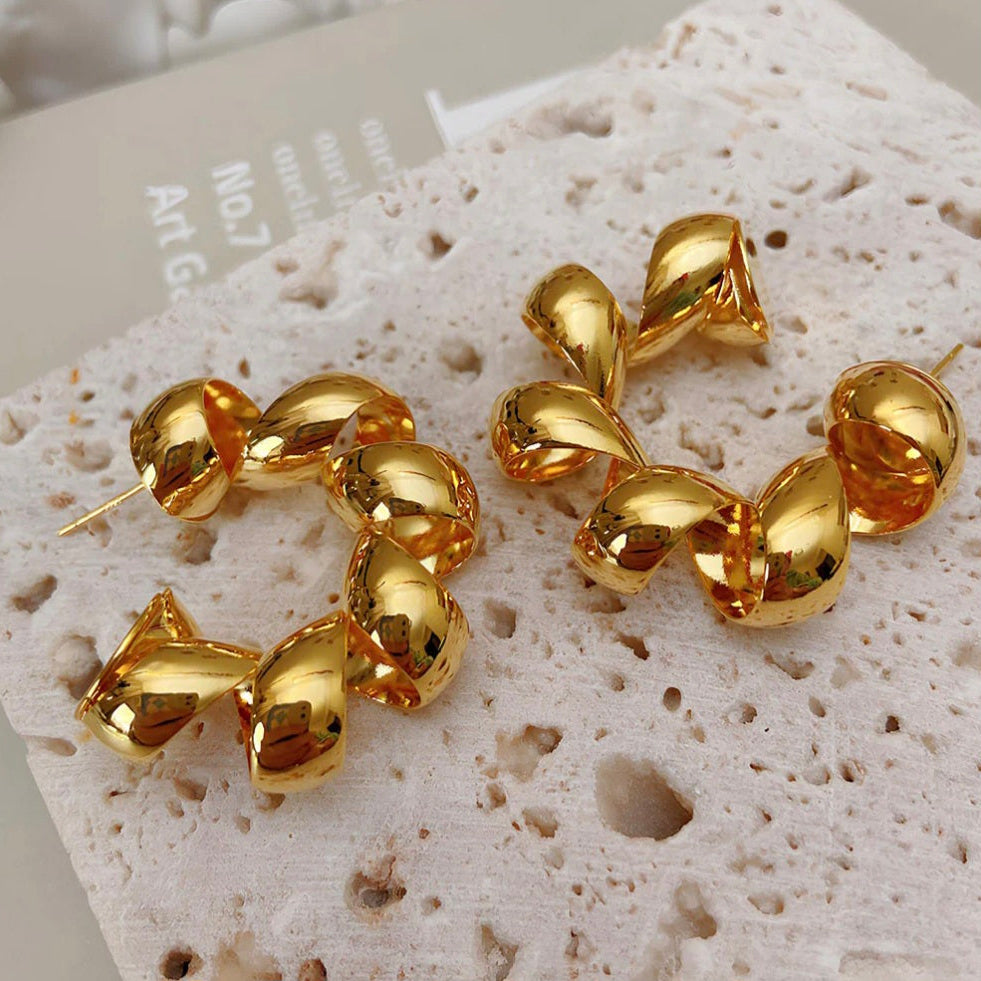 The Mona Earrings are a stunning representation of elegance and simplicity. These gold-tone hoop earrings feature a polished modern touch to the classic hoop design. With their sleek, curved shape. Their versatile style complements both casual and evening looks.
