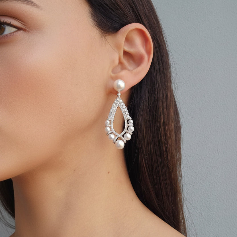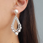 The Orelle Earrings offer an exquisite combination of elegance and timeless beauty featuring stunning teardrop style look filled with crystals and pearls hanging from a beautifully rounded pearl providing a graceful and refined look. Perfect for any special occasion or evening event, these earrings are sure to make a lasting impression.