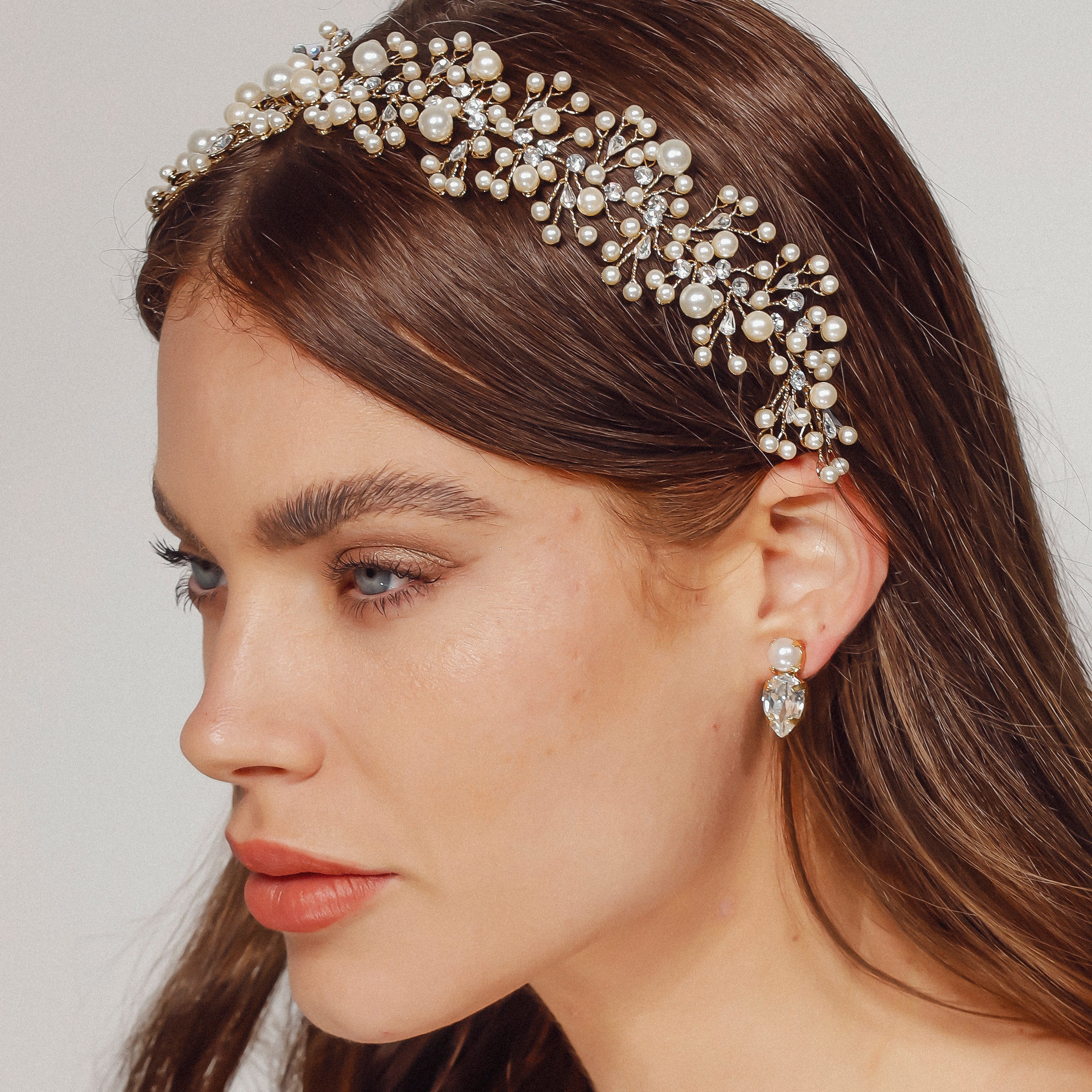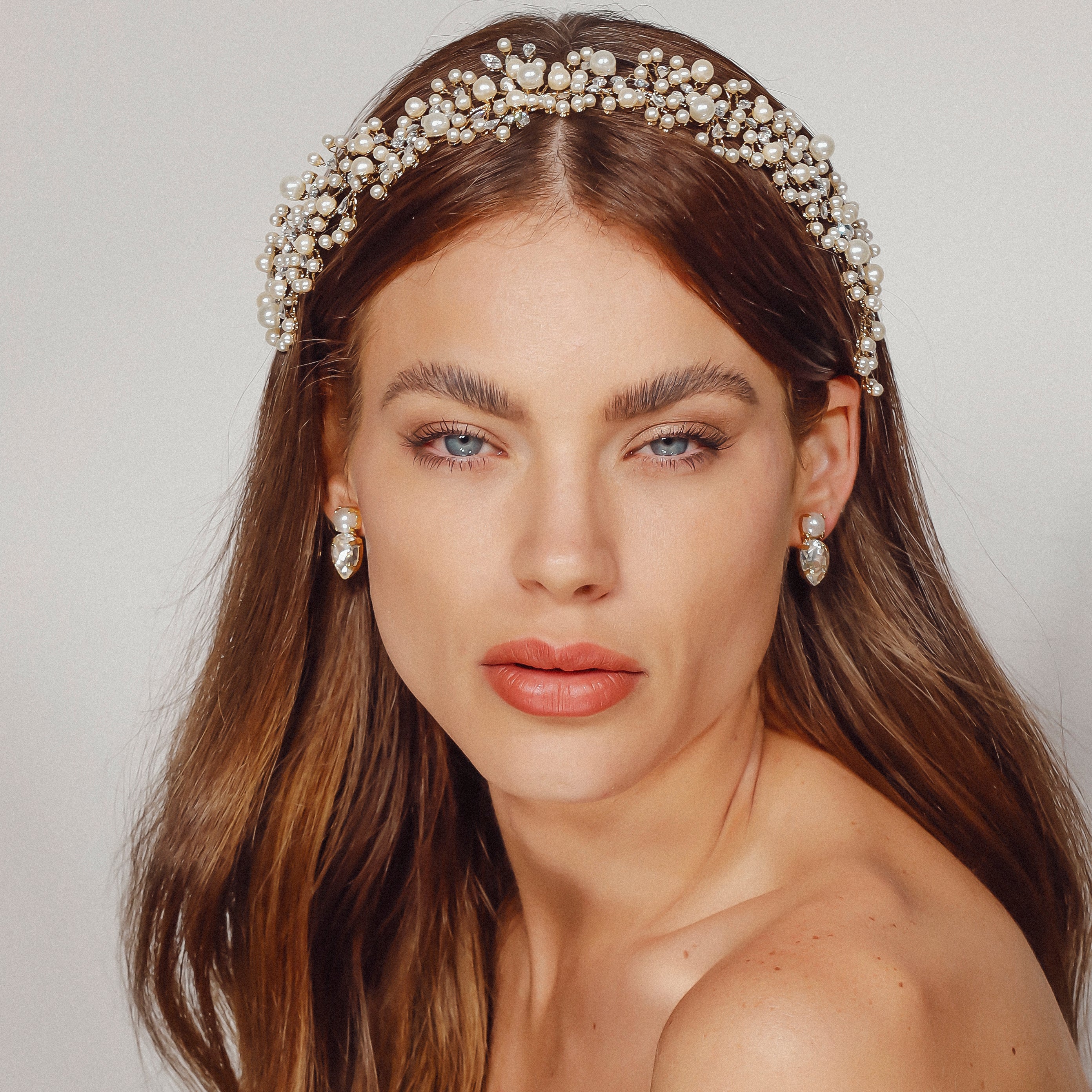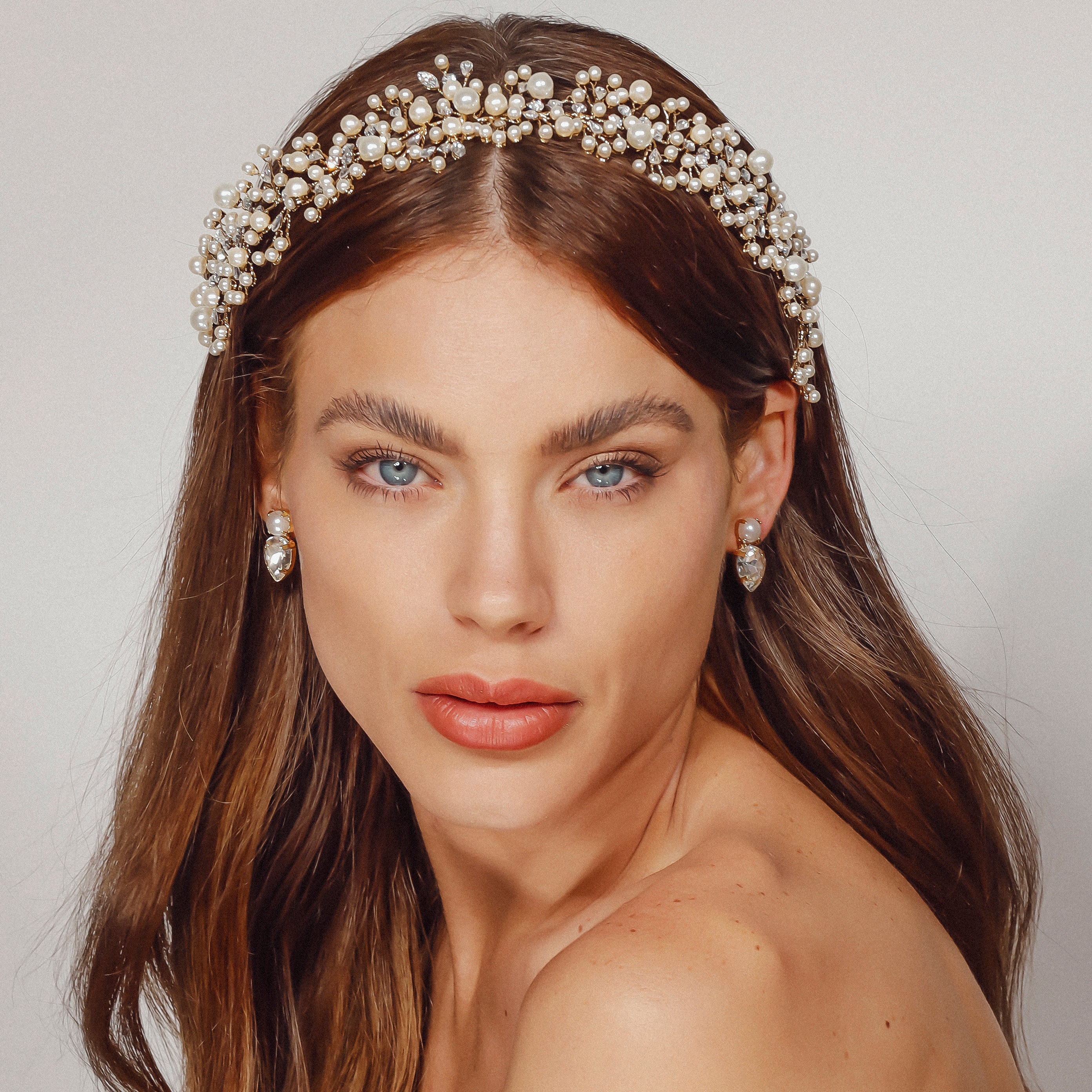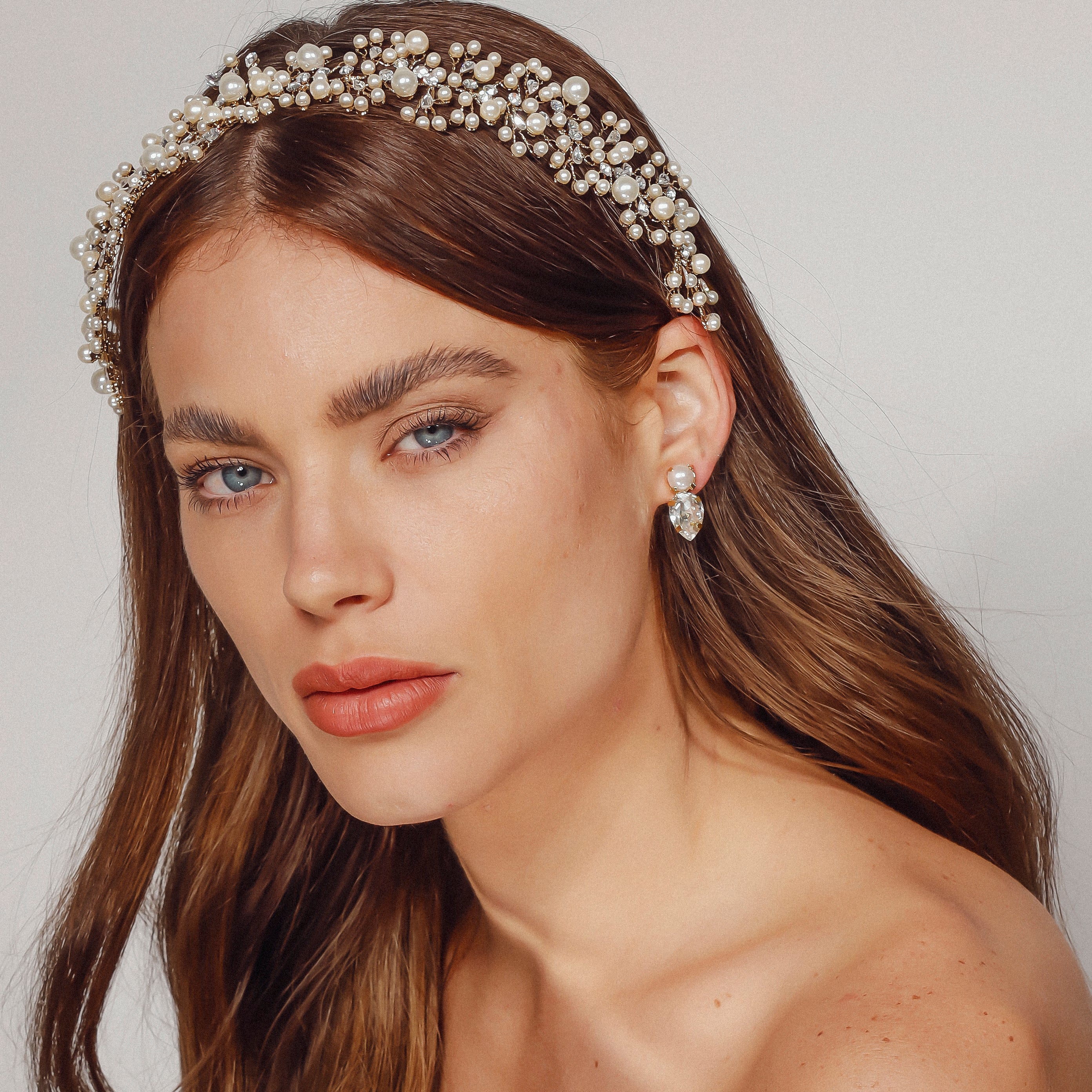 The Ovedio Headpiece is the epitome of timeless elegance, expertly crafted to bring a touch of glamour to your special occasion, adorned with beautiful pearls that capture the light with every angle. Perfect for a bride or anyone looking to add a touch of sophistication to their look, this headpiece seamlessly blends vintage charm with modern elegance. Its delicate design makes it an unforgettable accessory for weddings, galas, or any formal event.