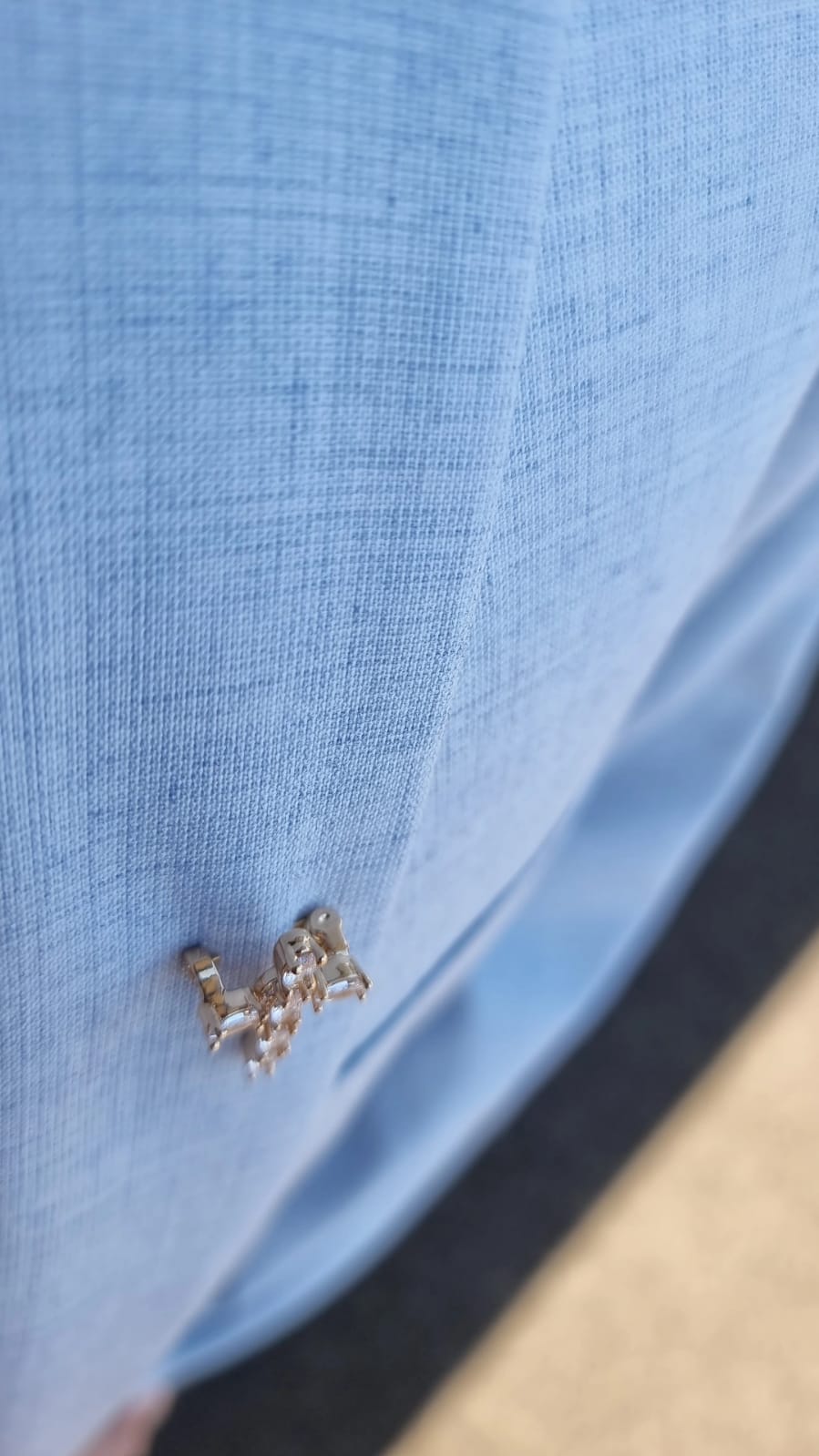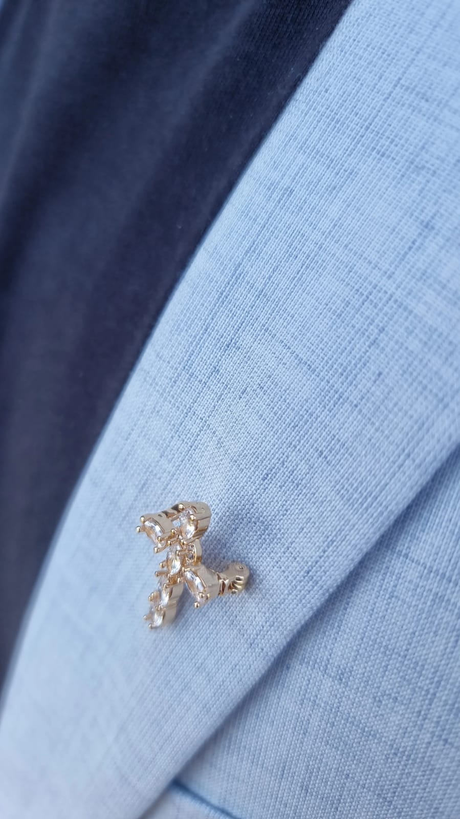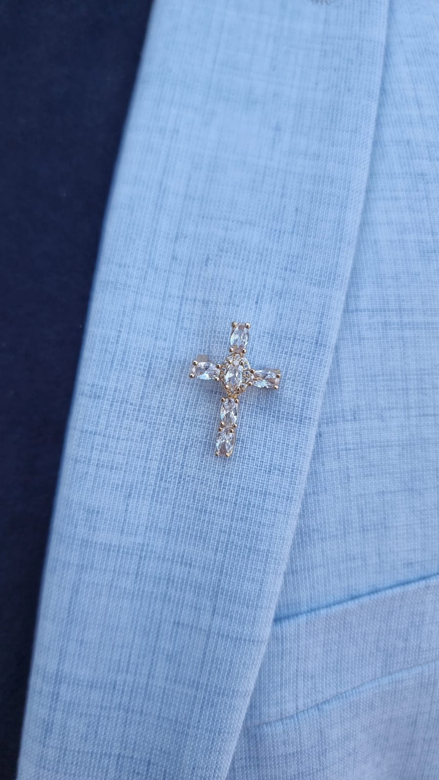 - Elegant design: Cross-shaped pin with oval stones.