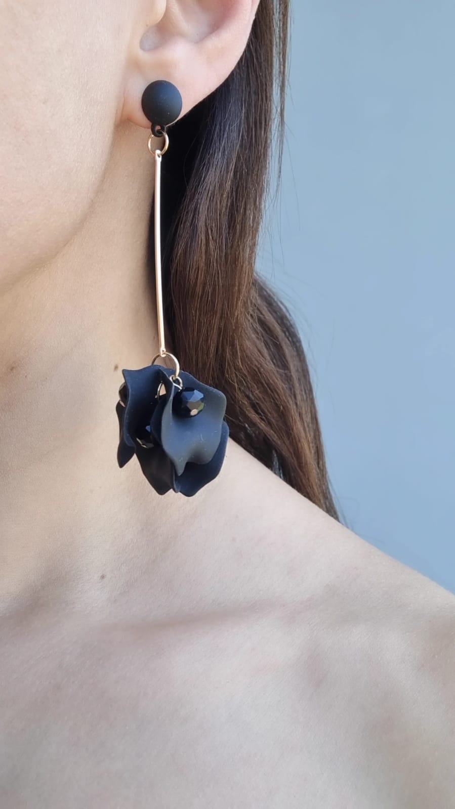 Introducing the stunning Quinn Black Earrings, a perfect blend of elegance and contemporary design featuring a cluster of black leaves gathered with beautifully placed black beads all hanging from a golden steel adding a touch of sophistication to any outfit, making them ideal for both casual outings and formal events.