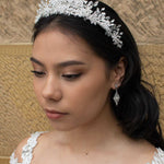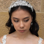 The essence of elegance and crystal charm, this divine creation is in a class of its own. Our Quinton Crown is a delicate and modern headpiece featuring daisy-shaped clear flowers that adorn the hairline and peek out from the array of tiny crystal stems that rise above to form a peak. Glamorous, light and decorated with ornate delicacy this is the ultimate crystal fantasy crown you've dreamt of wearing on your special day.
