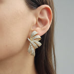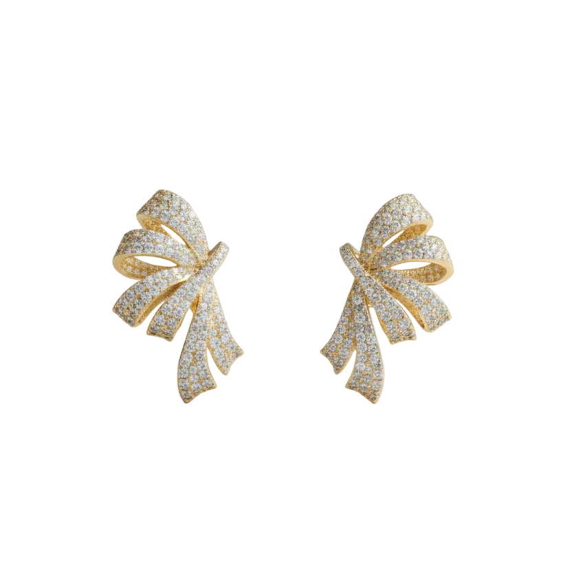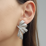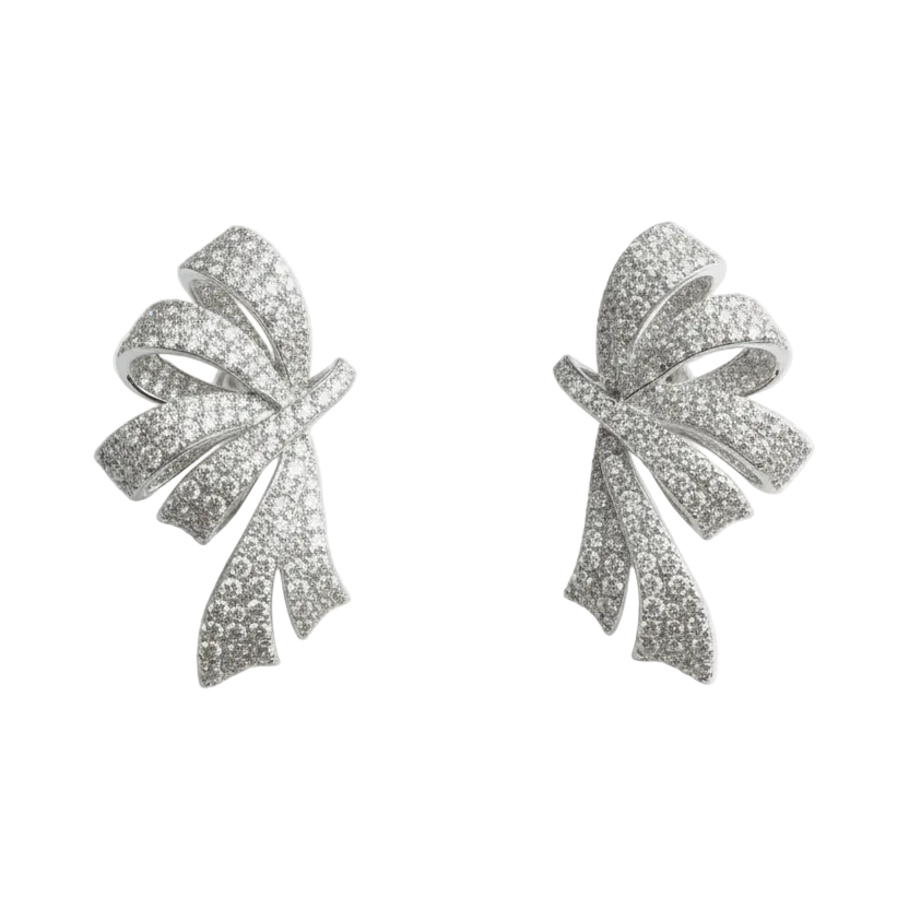 Elevate your style with the stunning Ribbon Earrings, designed to make a statement with their unique and elegant design, featuring a beautiful shape, adorned with sparkling cubic zirconia that catches the light from every angle.