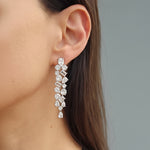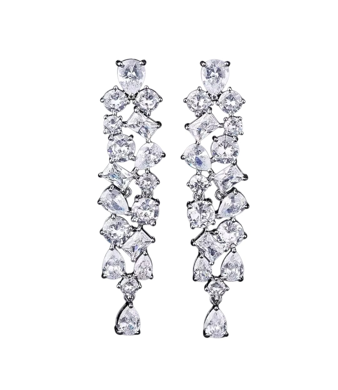 The Rima Earrings exude radiance and sophistication with their stunning arrangement of rectangular, teardrop and round-cut crystals. The brilliant design cascades downward, creating an elegant and glamorous effect that catches the light from every angle. Their luxurious appearance adds a touch of sparkle, making them a must-have for those who love to stand out with their style.