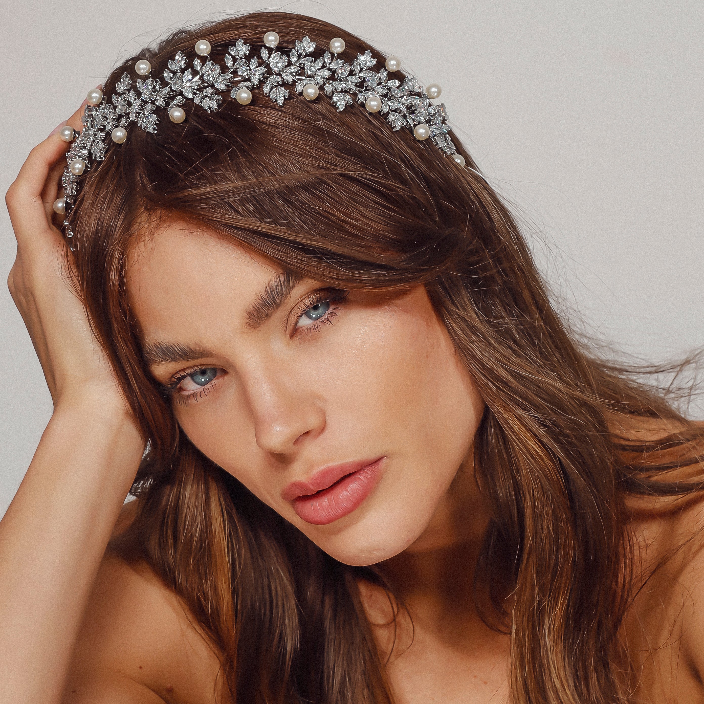 The Samara Headpiece is a stunning accessory designed to add elegance and sophistication to any special occasion. Crafted from Rhodium plating and adorned with AAA grade cubic zirconia and pearls, this headpiece exudes timeless beauty. Perfect for weddings, galas, or any formal event, it will elevate your look with a touch of luxury and charm.