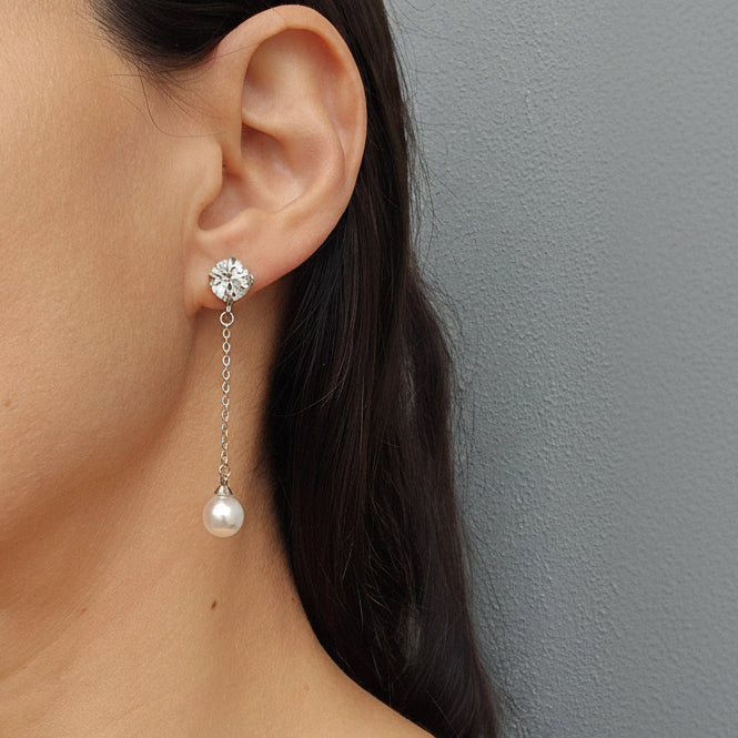 The Simmons Single Earrings are a beautiful blend of elegance and sophistication featuring a sparkling round crystal with a lustrous pearl drop that elegantly sways with every movement. The simple yet striking design adds a refined touch to any ensemble, making them perfect for both casual and formal occasions.