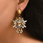 The Sparkle Champagne Earrings boast a stunning arrangement of colorful gemstones, featuring a beautiful visual effect.
