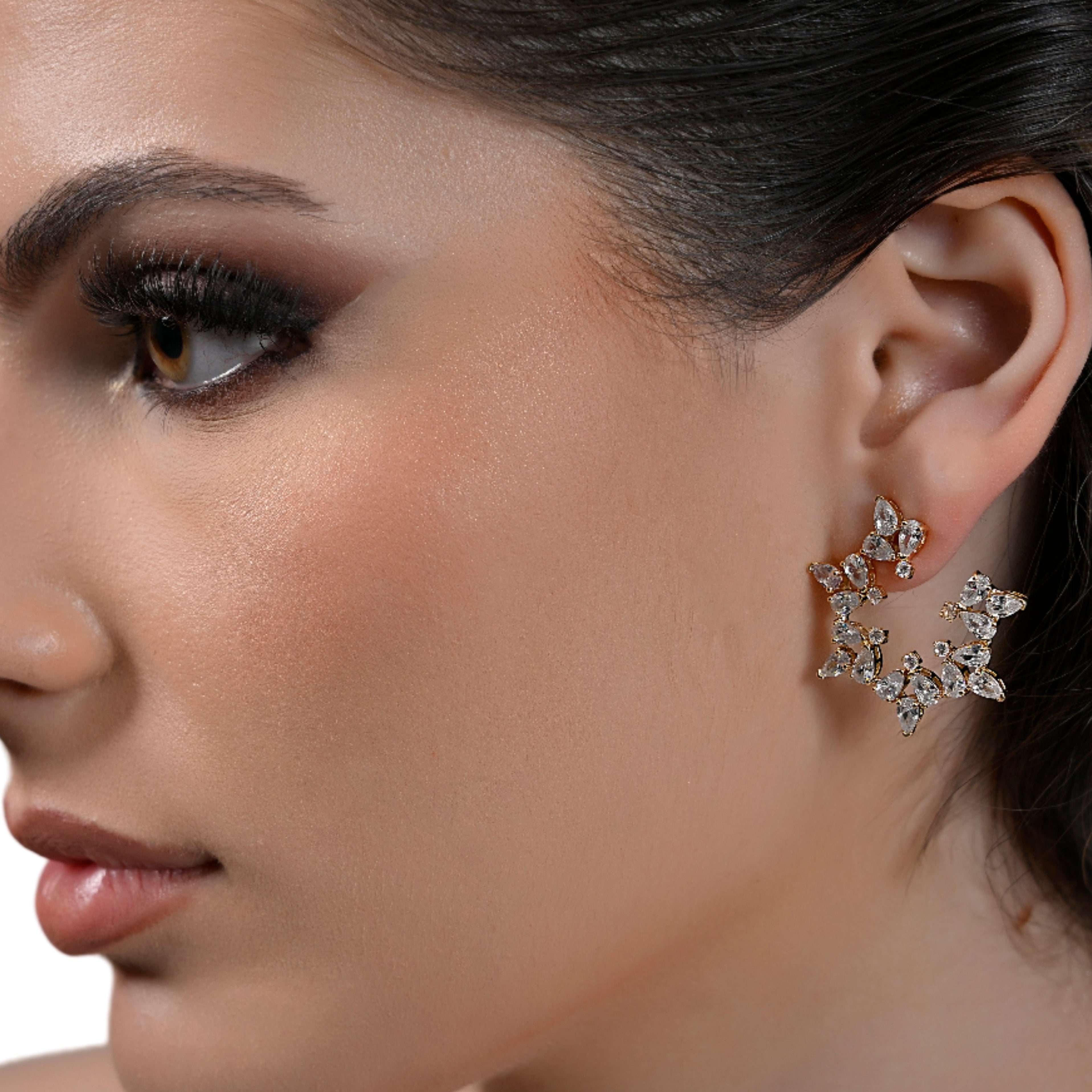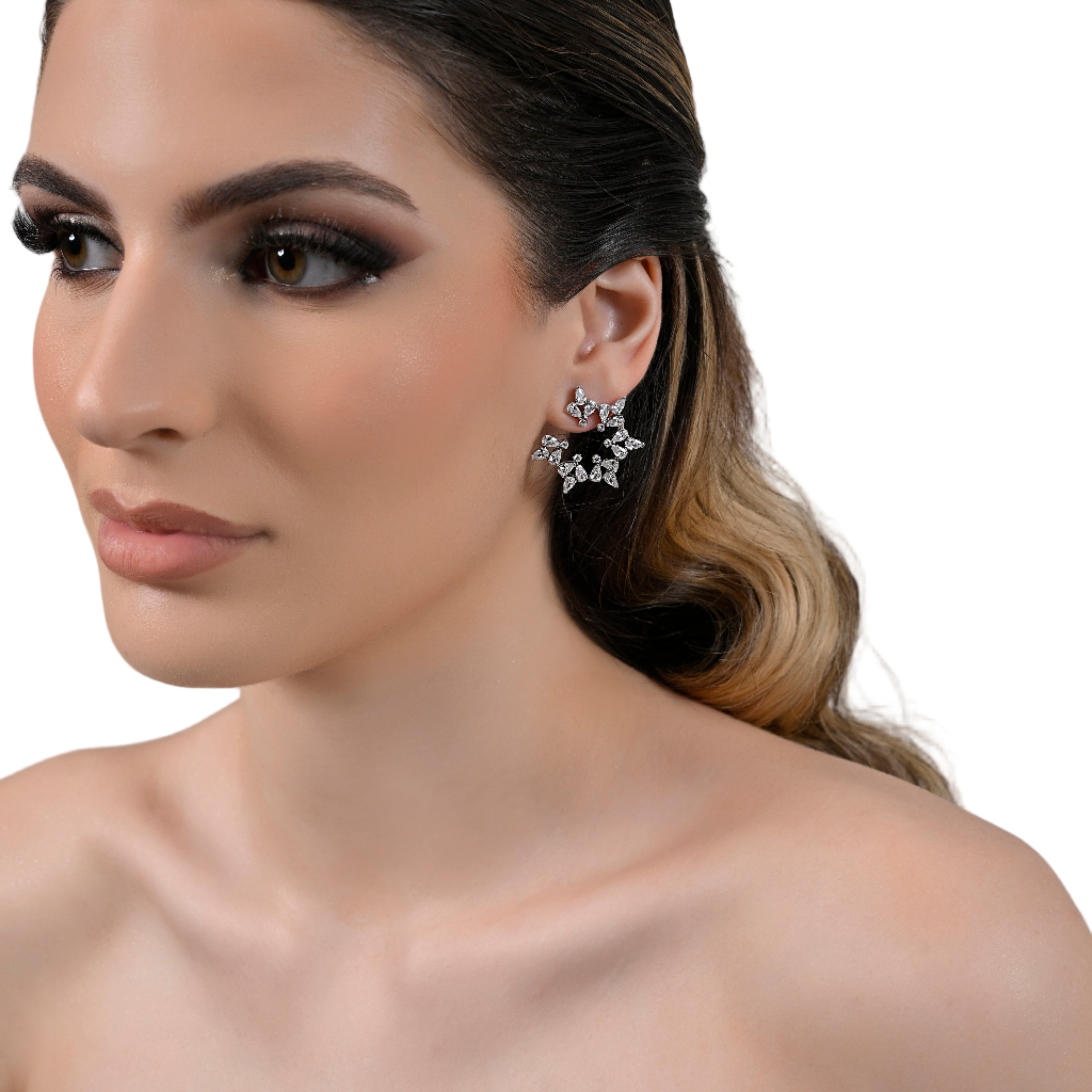 The Star Earrings are a striking accessory that radiates luxury and elegance. These earrings feature a stunning star-shaped design with a central, large crystal surrounded by smaller, brilliant-cut stones, resembling the delicate petals of a flower. With their timeless sparkle, the Star Earrings are perfect for adding a touch of glamour to any occasion.