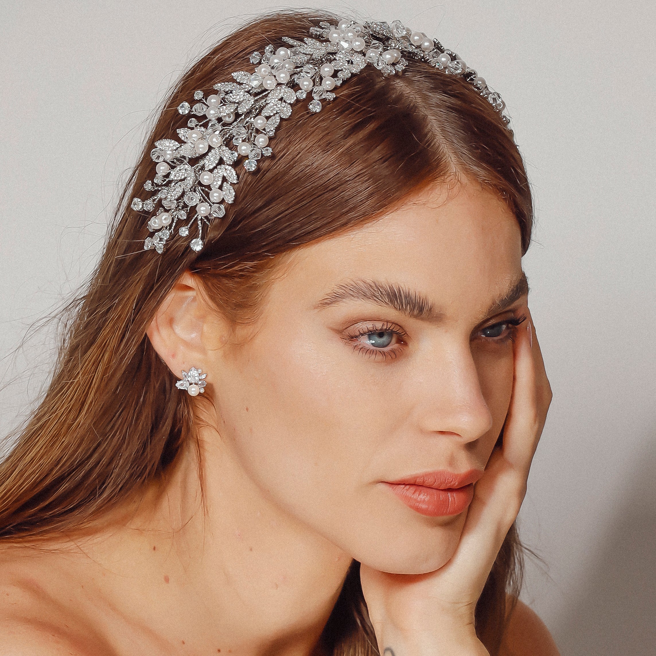 The Svetlana Headpiece is a stunning and elegant accessory, perfect for adding a touch of sparkle and sophistication to your special occasion look. This headpiece exudes timeless beauty and is Ideal for weddings, galas, or any event where you want to make a statement, the Svetlana Headpiece beautifully complements various hairstyles and adds a refined, glamorous touch to your ensemble.