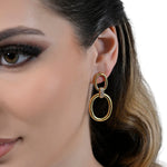 The Tara Earrings offer a modern, chic design with a touch of glamour. These bold gold-tone earrings feature two linked oval hoops, accented by a row of sparkling cubic zirconia stones that add a sophisticated touch to the design. Perfect for adding a statement piece to both casual and formal outfits, these earrings are a stylish and versatile addition to any jewelry collection.