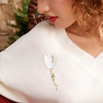 The Tullie Bridal Pin is a stunning and elegant accessory designed to bring a touch of sophistication and glamour to any bridal look. Its polished gold stem and white petals add a refined, luxurious feel, ideal for brides looking for a statement piece to complement their wedding day attire.