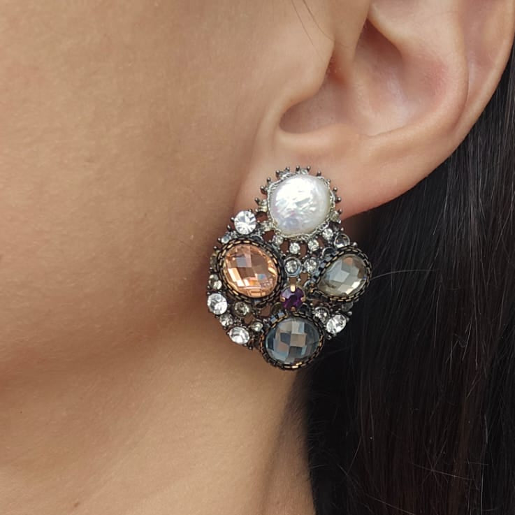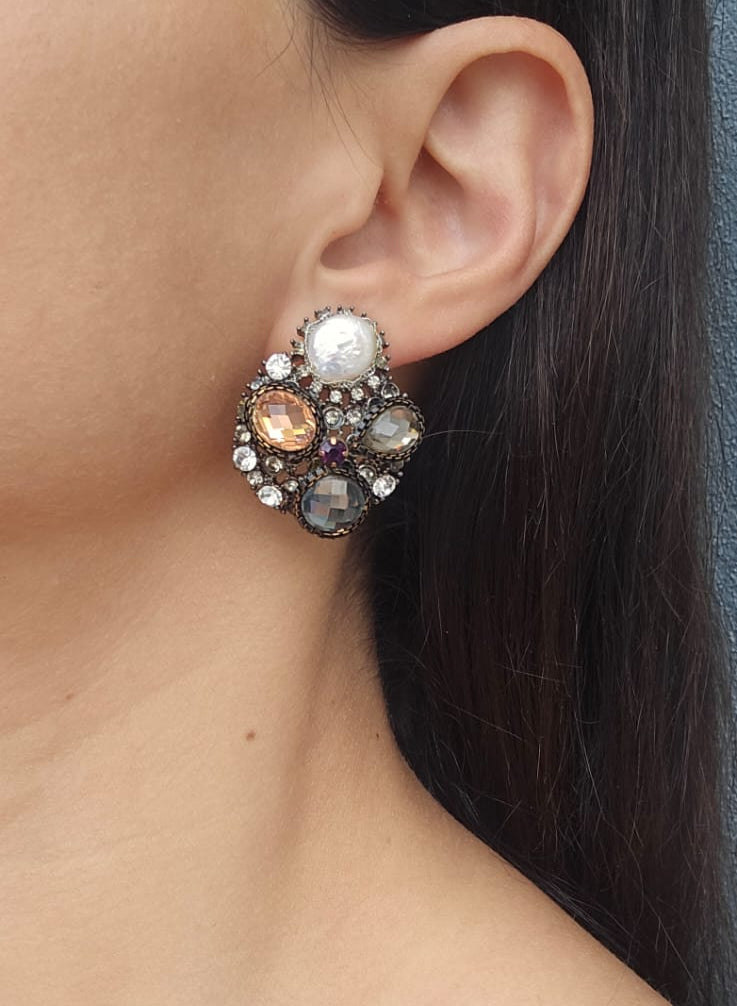 The Varela Earrings are the epitome of sophistication, featuring a stunning design crafted from beautiful stones. The Varela Earrings combine elegance with modern style, making them an ideal choice for weddings, evening events, or any special occasion. The intricately placed stones sparkle with every movement, catching the light and adding a touch of glamour to your ensemble.