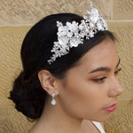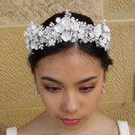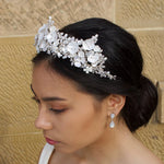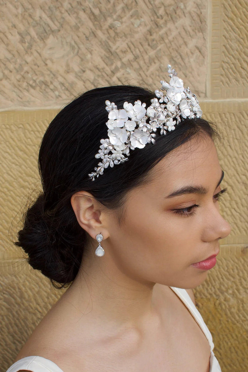 Our Wethra Headpiece is a unique three-peaked crowns, lovingly handcrafted, this design combines a stunning sprinkling of crystals, pearls and florals to create a breathtakingly beautiful headpiece. You will look and feel effortlessly elegant.