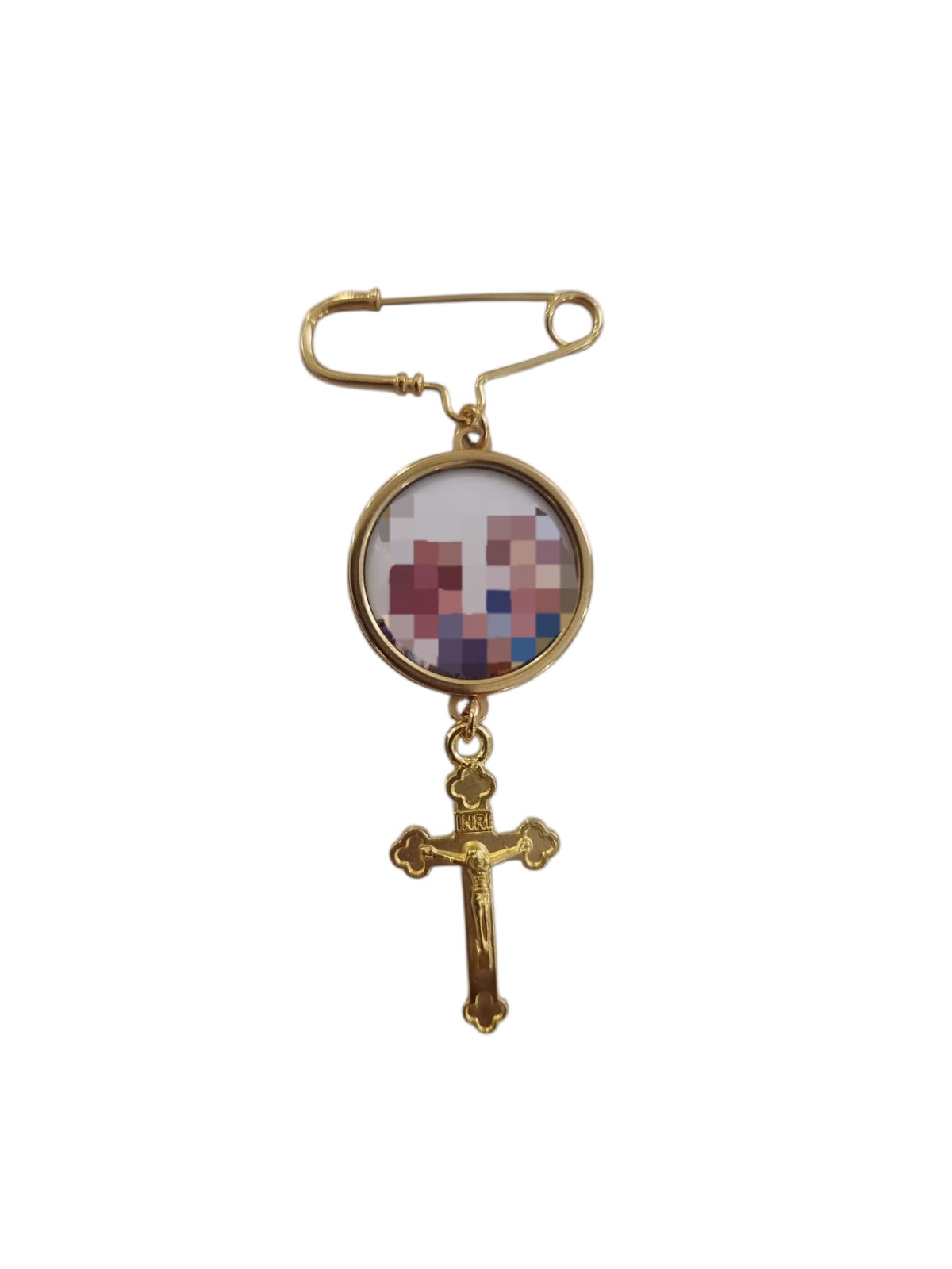The custom Wilma Memorial Pin adds a deeply personal touch to your collection. Featuring a unique photo framed with a dangling cross pendant. This pin is a beautiful way to carry a meaningful memory with you, adding a delicate, spiritual detail, making them perfect for any occasion that calls for both sentiment and style.