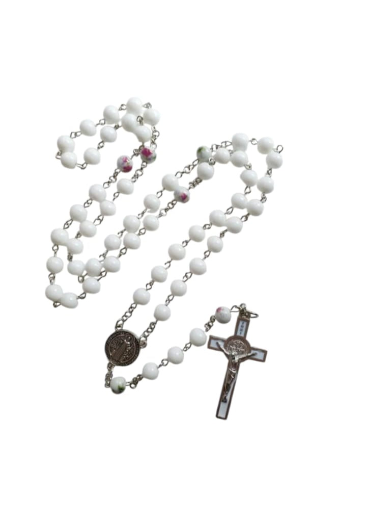 The White Rose Rosary is a full-length elegant design, crafted with 8mm beads, this piece serves as both a spiritual and a sophisticated accessory. Perfect for both daily use and special occasions, the White Rose Rosary is a meaningful gift or personal keepsake.