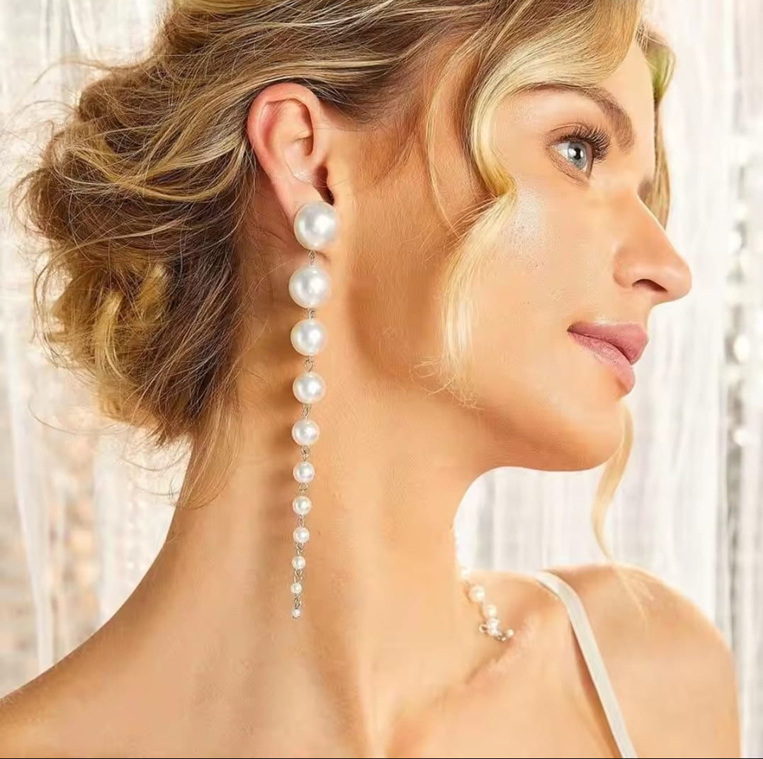 Introducing the Zerafa Earring, a stunning addition to any Jewellery collection. Featuring a cascade of pearl drop, these earrings are designed to capture light and attention, making them the perfect statement piece.